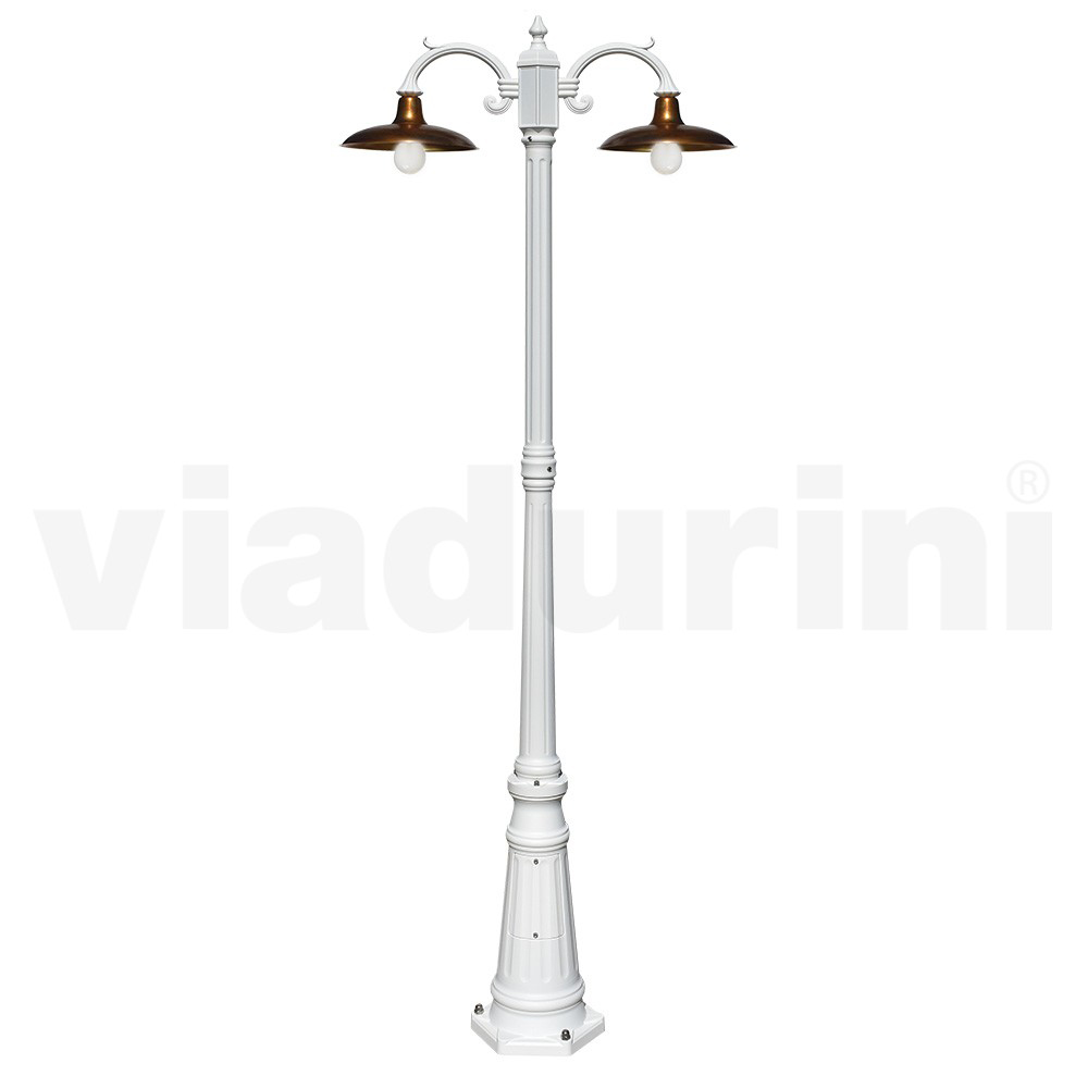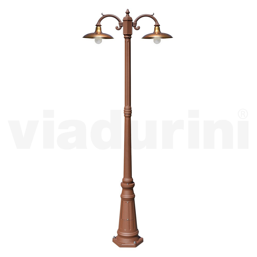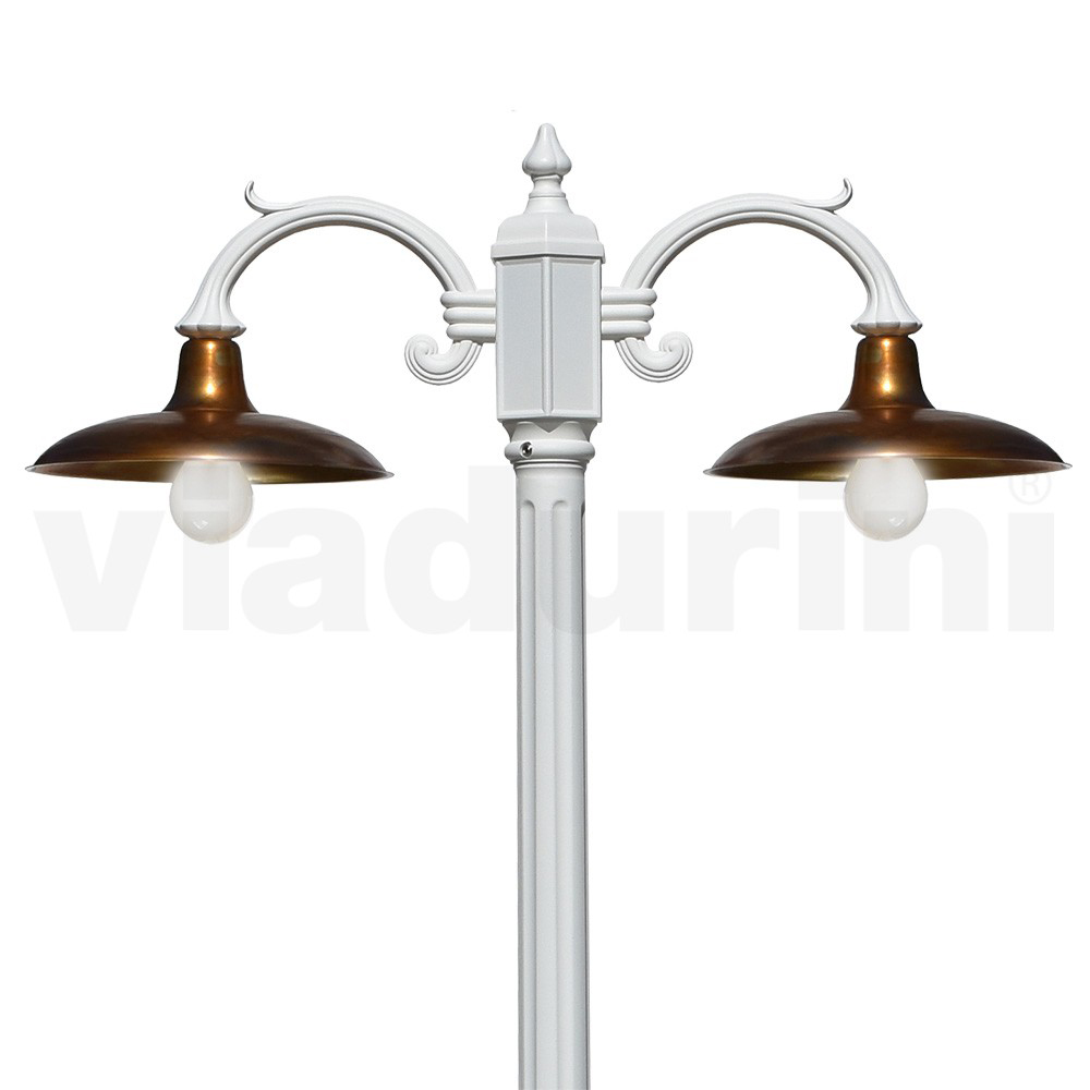 2-ljus gatlampa i aluminium i vintagestil med spridare i mässing Tillverkad i Italien.