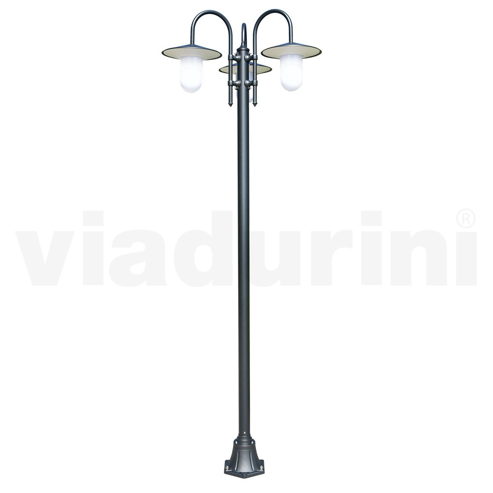 Vintage gatlykta med 3 lampor i aluminium och polykarbonat Tillverkad i Italien.