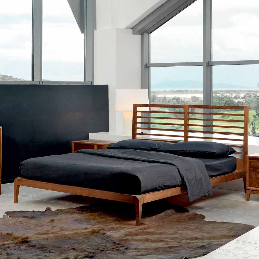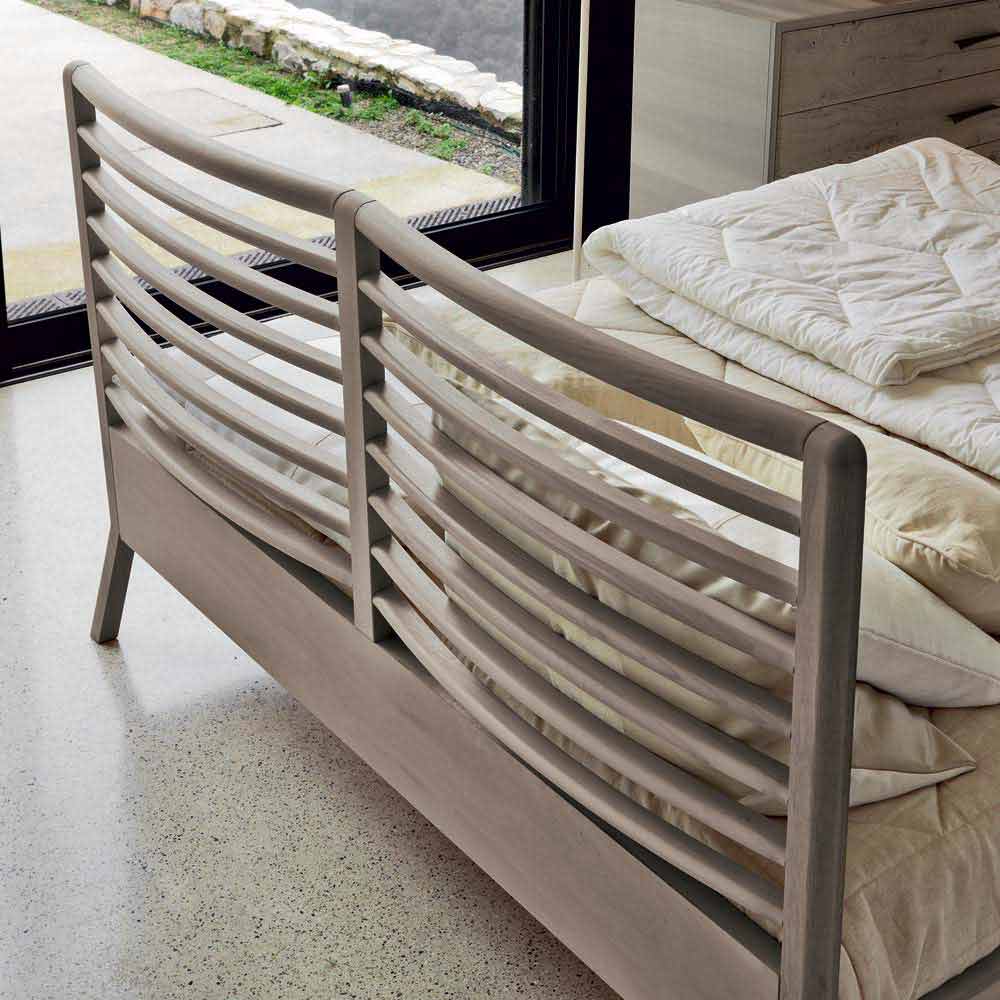 I den här lösningen erbjuder den mest harmoniska sängen en vadderad huvudtacka, utsmyckad med sömmar som spårar vertikala linjer. Viktig och elegant, den är gjord av massiv valnöt färdig i olja, för att införas i de mest raffinerade inredningskontexten.