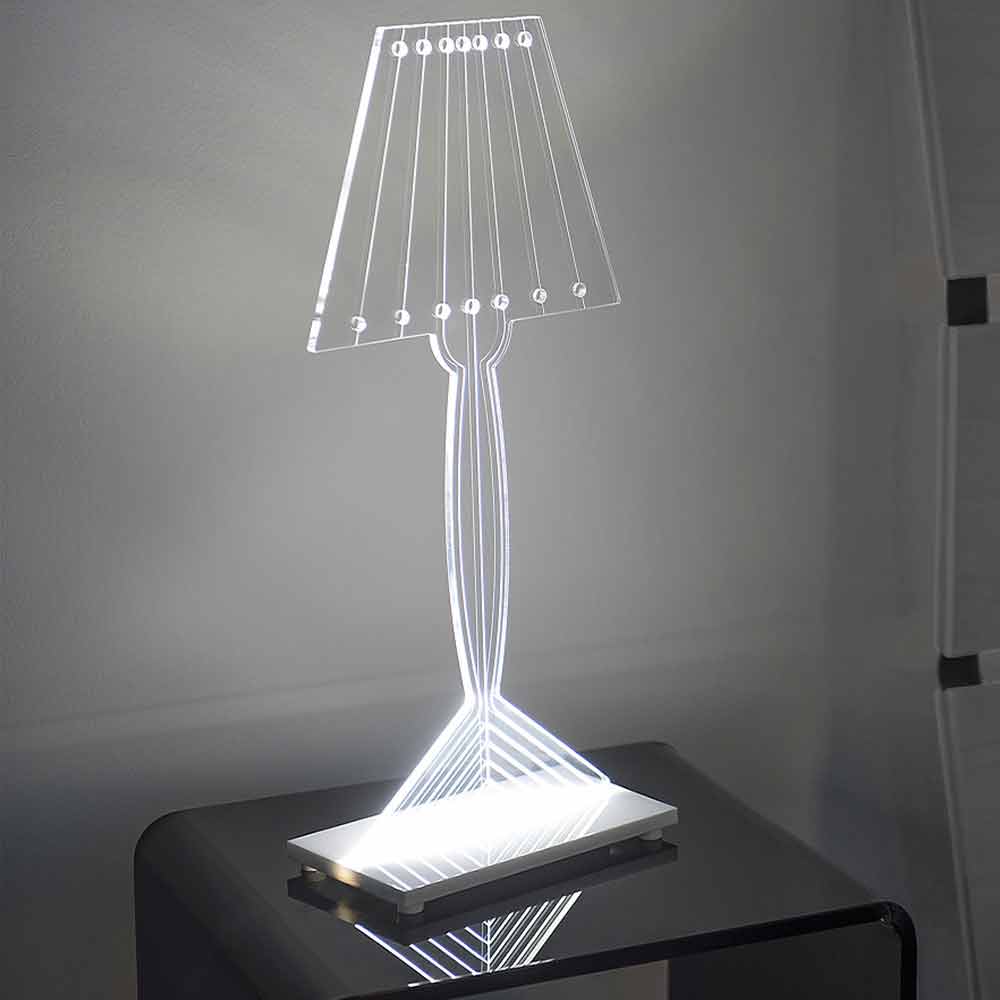 Elegant bordslampa / sänglampad LED-lampa, tillverkad i plexiglas PMMA 100% från jungfru polymer.
