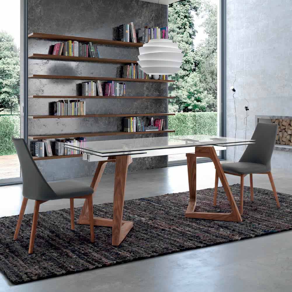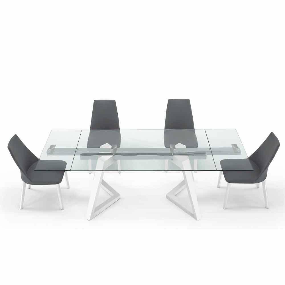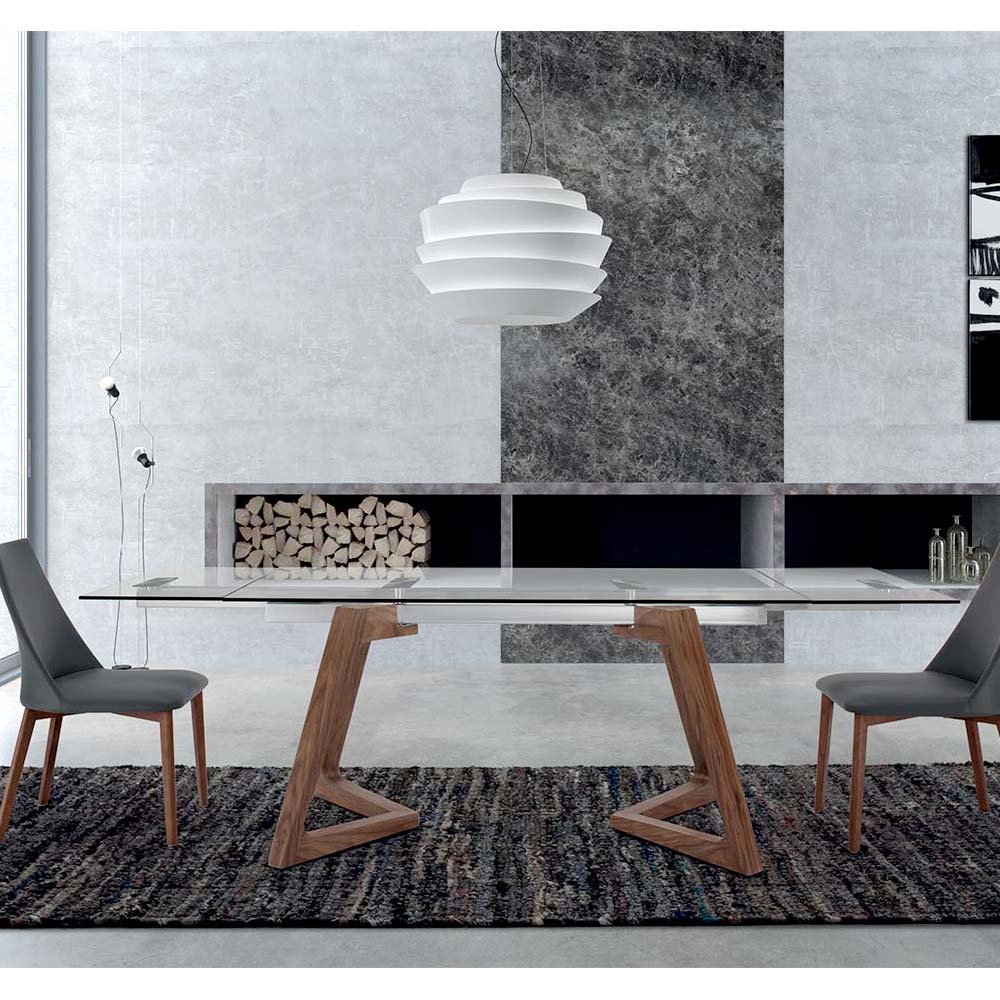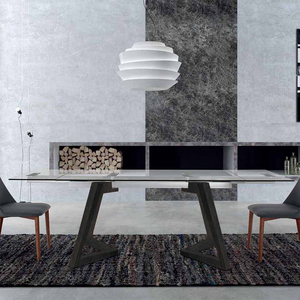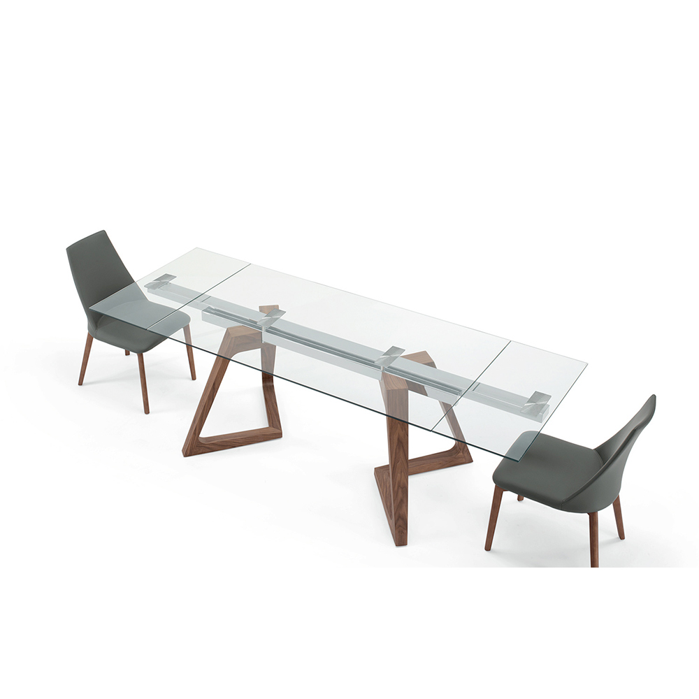 Modern design utdragbart träfanerbord upp till 280 cm med transparent glasskiva.