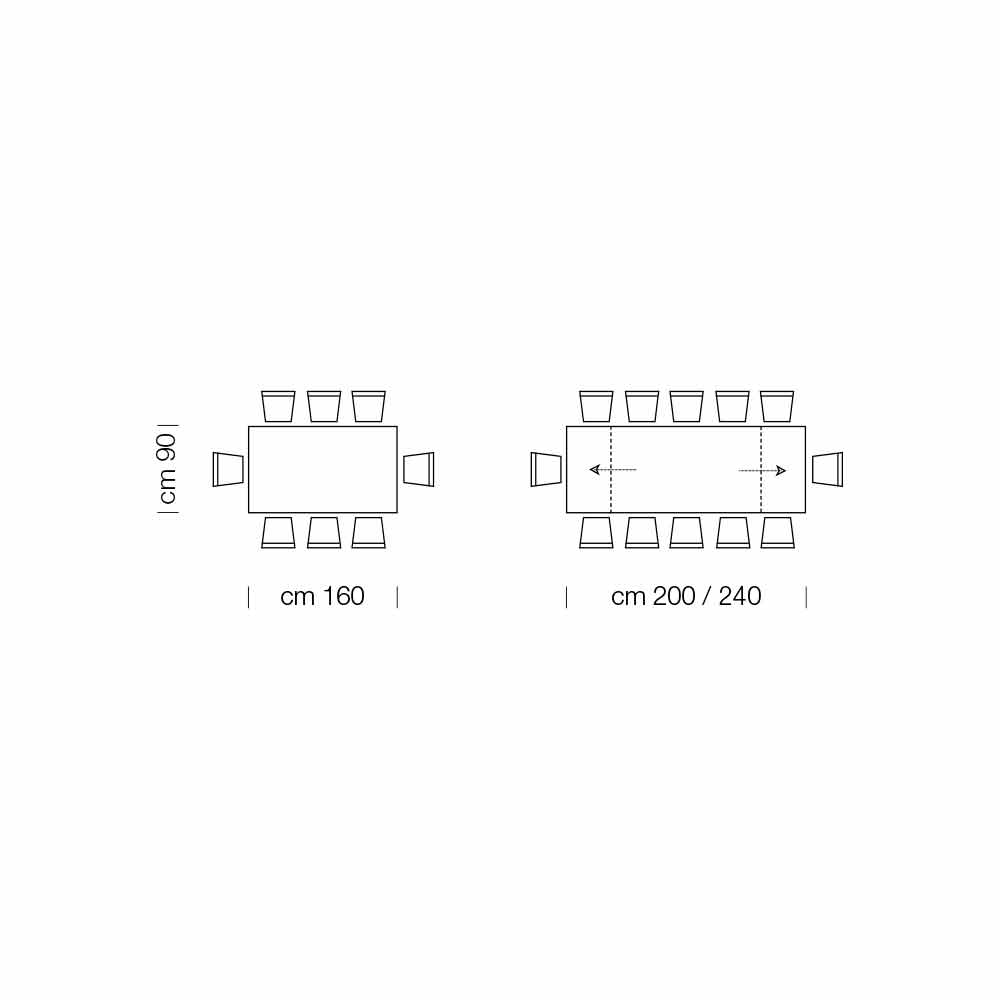 Åtgärder- L 160 (240) x D 90 x H 77 cm (8/12 platser);