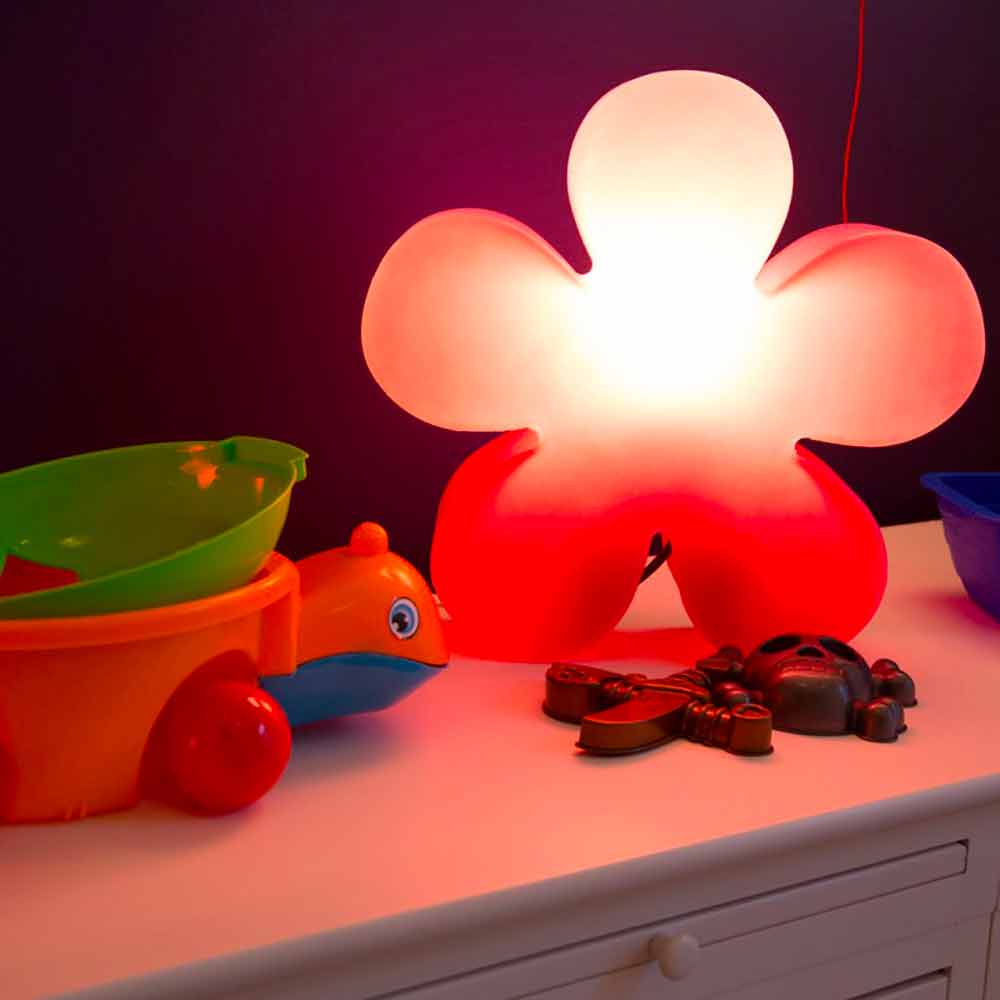 Golvlampa i två storlekar i form av en färgad blomma med solfäste.