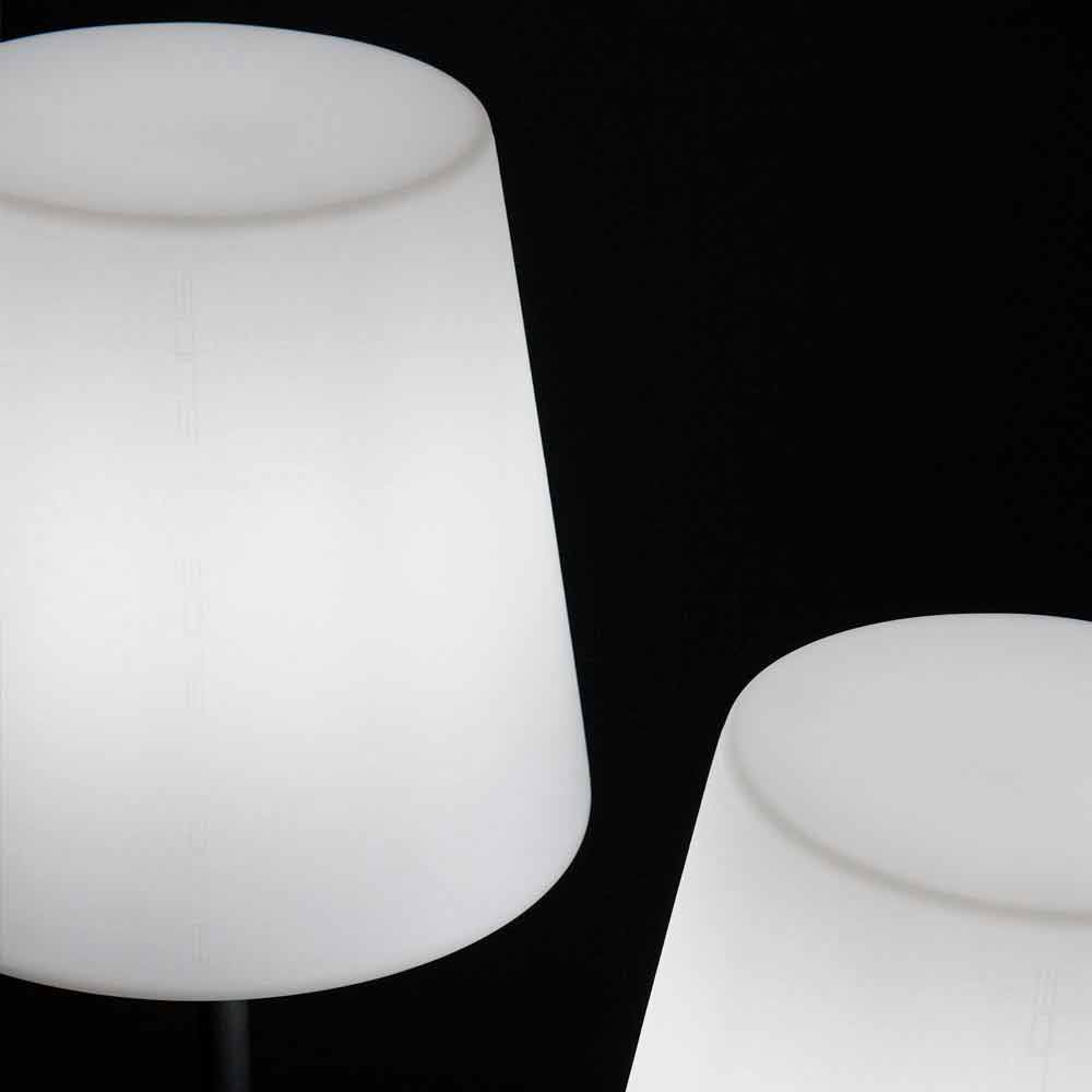 Lampskärmen är gjord av polyeten i ljust vitt och sockeln är gjord av galvaniserat stål. Det finns tre olika storlekar tillgängliga för denna möbel: