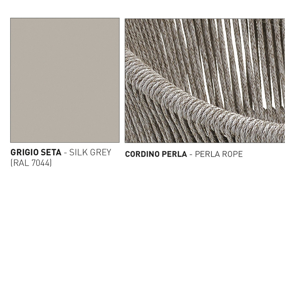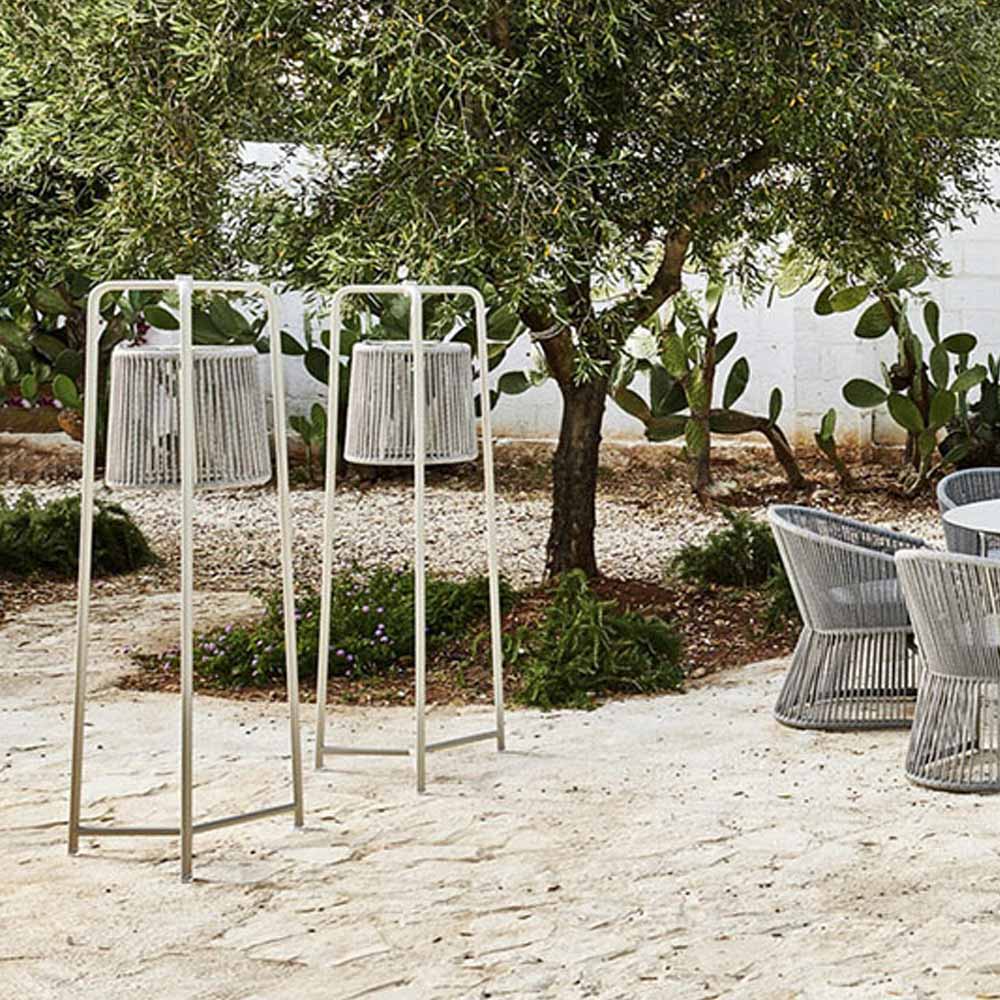 Trädgårdslampa helt tillverkad i Italien med pulverlackerad aluminiumstruktur i sidengrå finish och en handgjord väv i pärlfärgad syntetfiber komplett med LED-ljus . De underbara ytskikten som föreslås är idealiska för att skapa en suggestiv atmosfär och för att framhäva vissa delar av huset, revolutionera utseendet på den omgivande miljön och berika dess estetik.