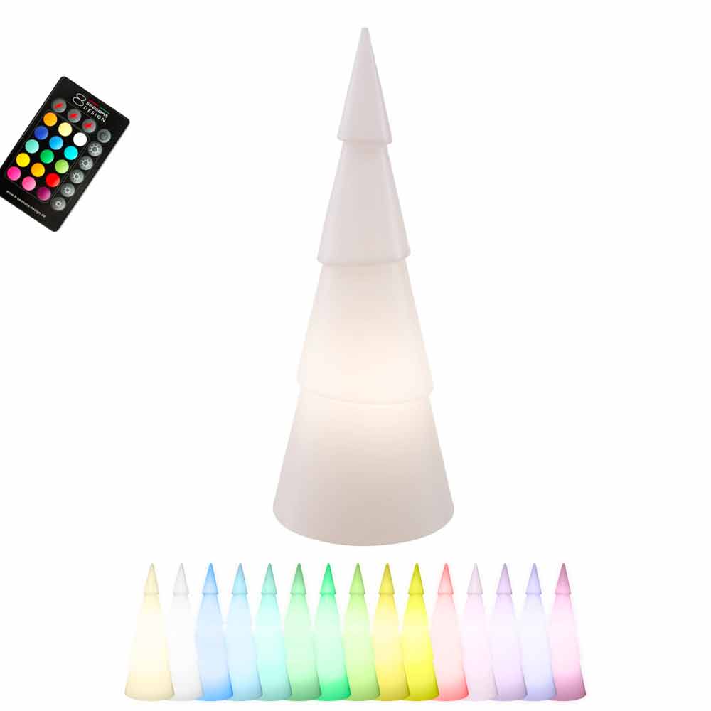 Golvlampa med LED- eller soldesign i form av en konisk julgran i 3 storlekar för användning inomhus eller utomhus.