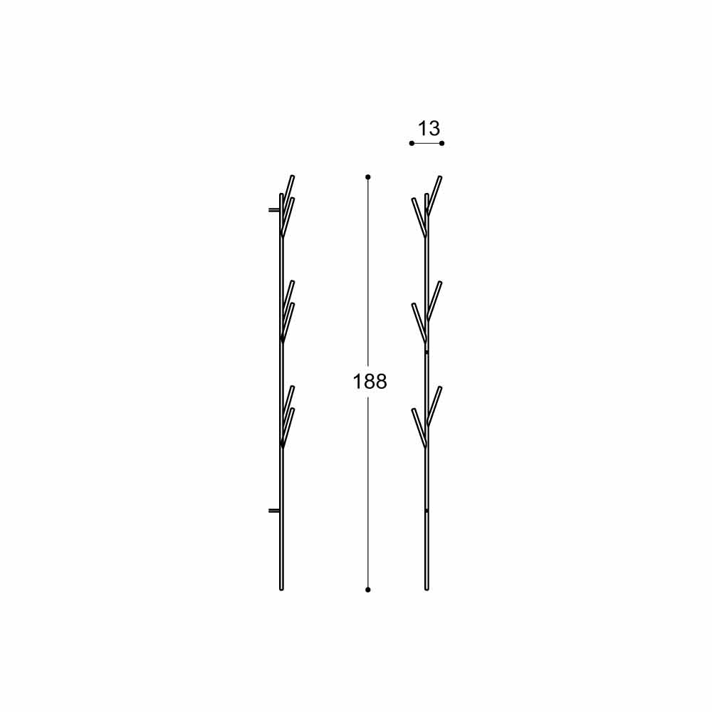 Stiliserat trädformat klädhängare i målad metall. Dess "grenar", ordnade slumpmässigt, fungerar som en handdukshängare eller badrock.