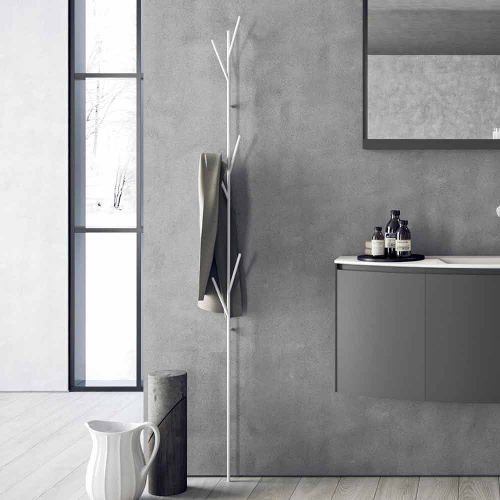 Trädformad kappstativ, modern design i vit eller krommetall tillverkad i Italien.