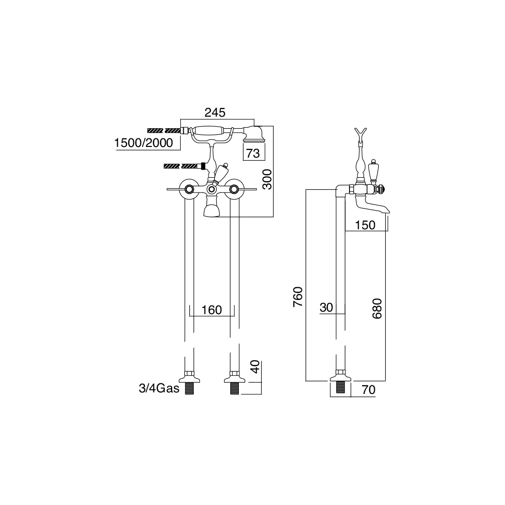 Höjd på vred med handdusch 30cm