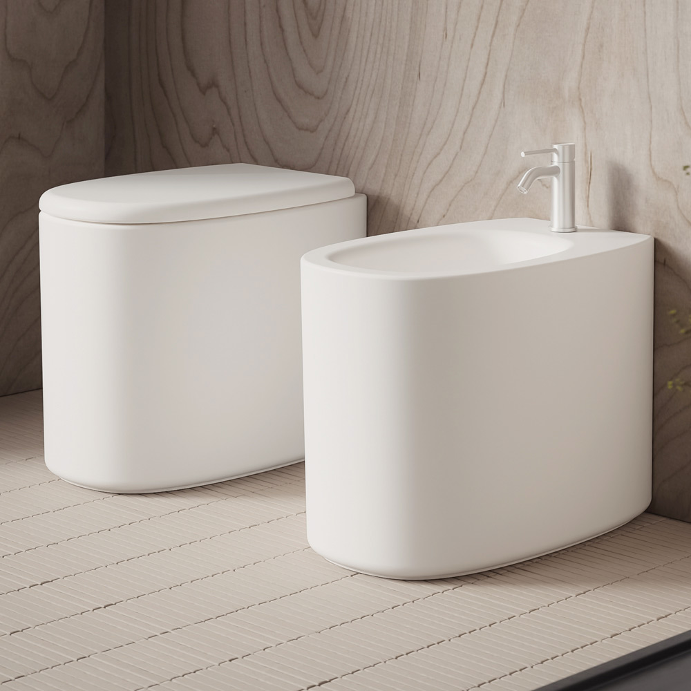 En toalett som kombinerar mjuka, rena linjer med tidlös elegans, perfekt för dig som vill ha ett modernt och funktionellt badrum utan att offra elegans.