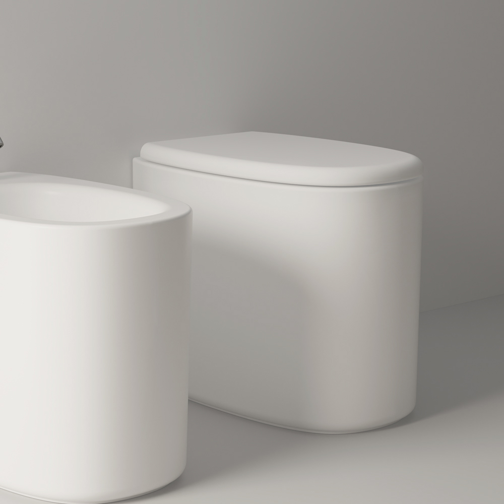 Denna golvstående sanitetsarmatur är tillverkad av högkvalitativ keramik och har en kompakt, omslutande form som ger harmoni till badrummet samtidigt som den säkerställer komfort och praktiska egenskaper i vardagen. Ytan reflekterar ljuset elegant, vilket förstärker känslan av renhet och ordning.