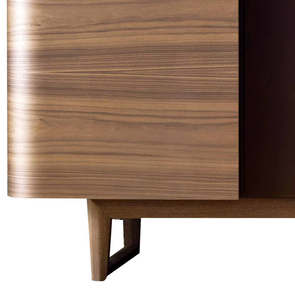 Gjord i Italien för hand av skickliga italienska hantverkare med en slät och flerskiktsböjd finerad valnötstruktur för den yttre och inre delen.