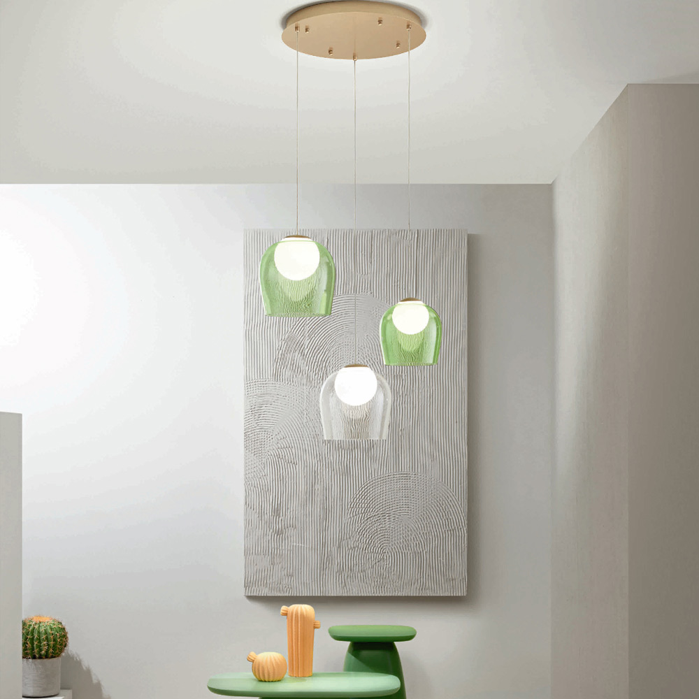 valfri lampskärm i färgat glas som kan tas bort genom att skruva loss glaskulan.