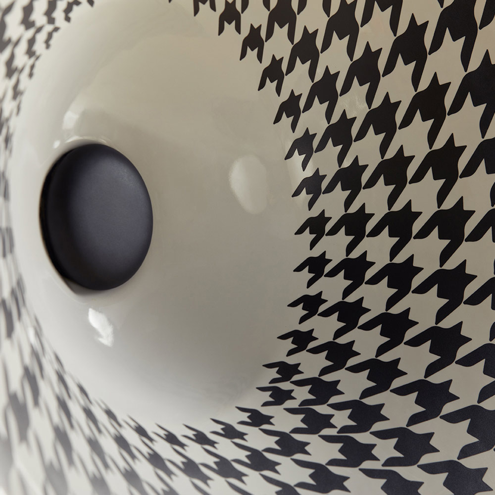 - invändig houndstooth reliefdekor på vit emalj, utvändig vit emalj