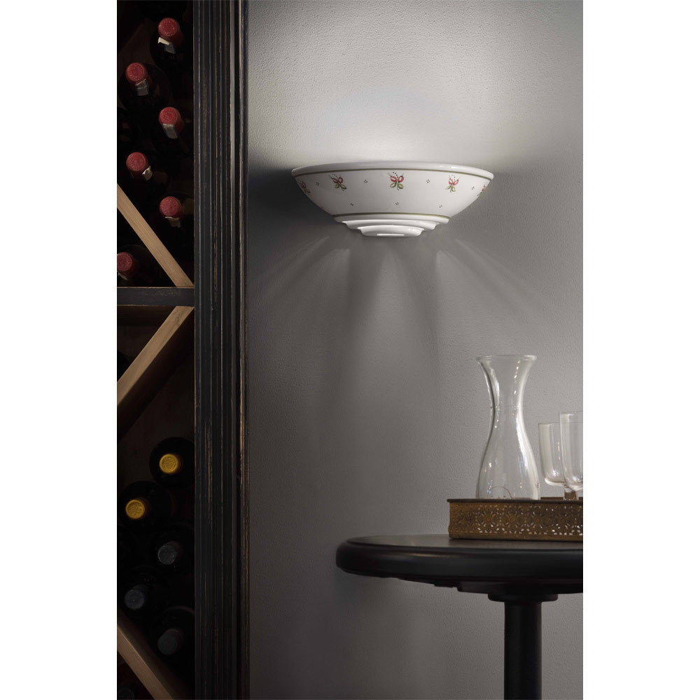 Denna halvmåneformade 2-ljus vägglampa är helt gjord av keramik med handmålade blomdekorationsmotiv, för att lyfta fram hantverkarnas skicklighet och manuella färdigheter.