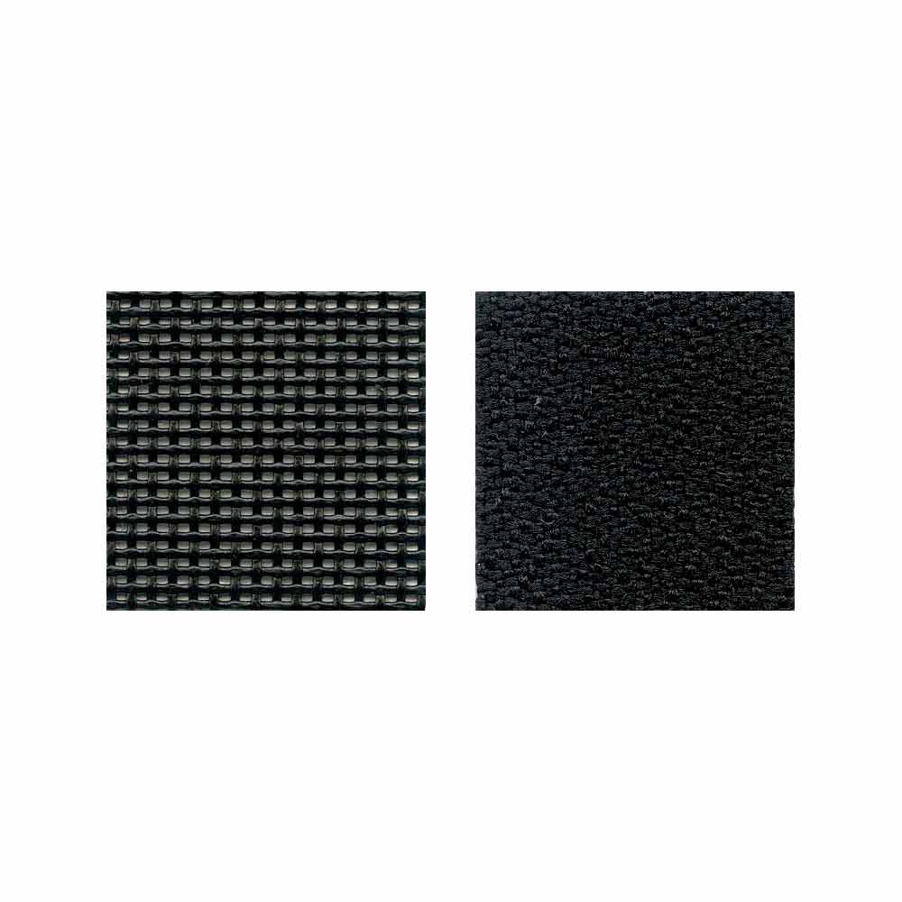 vadderat säte täckt i svart tyg och rygg i svart mikroperforerad teknorete.