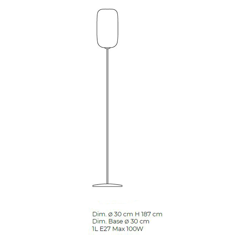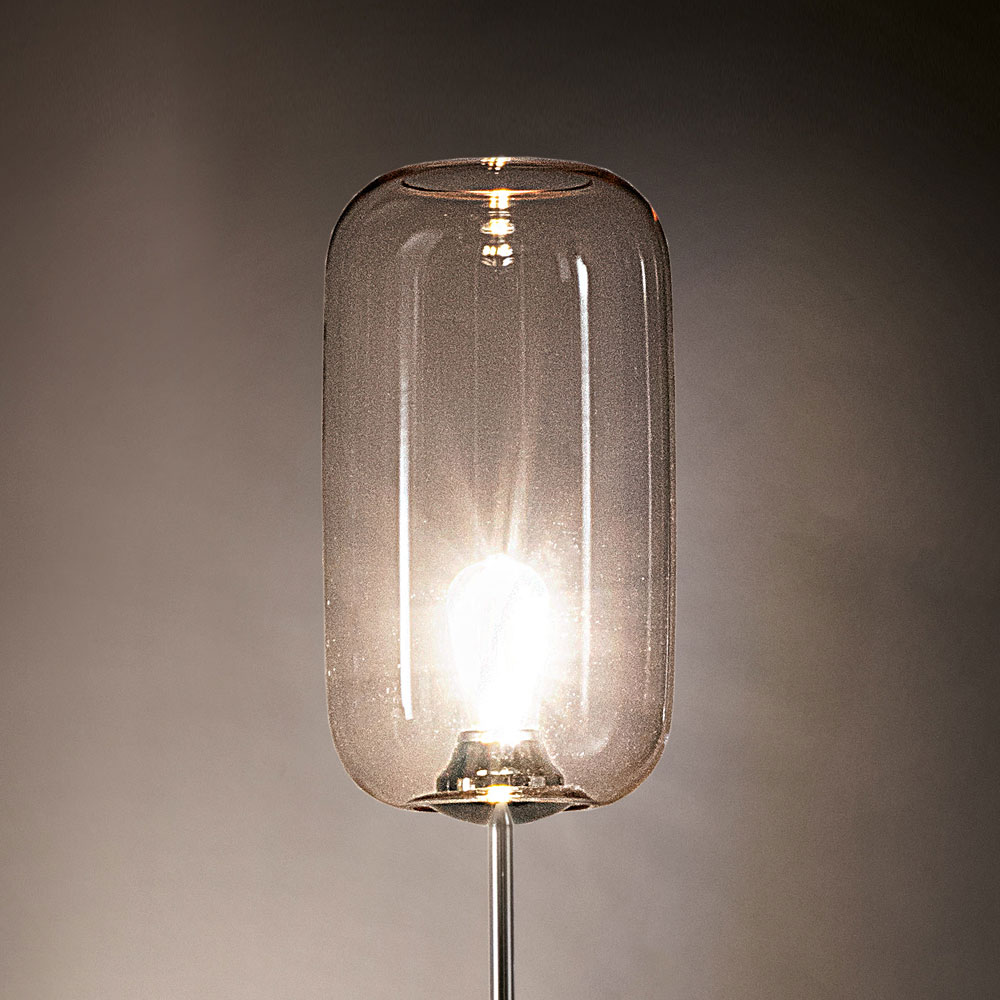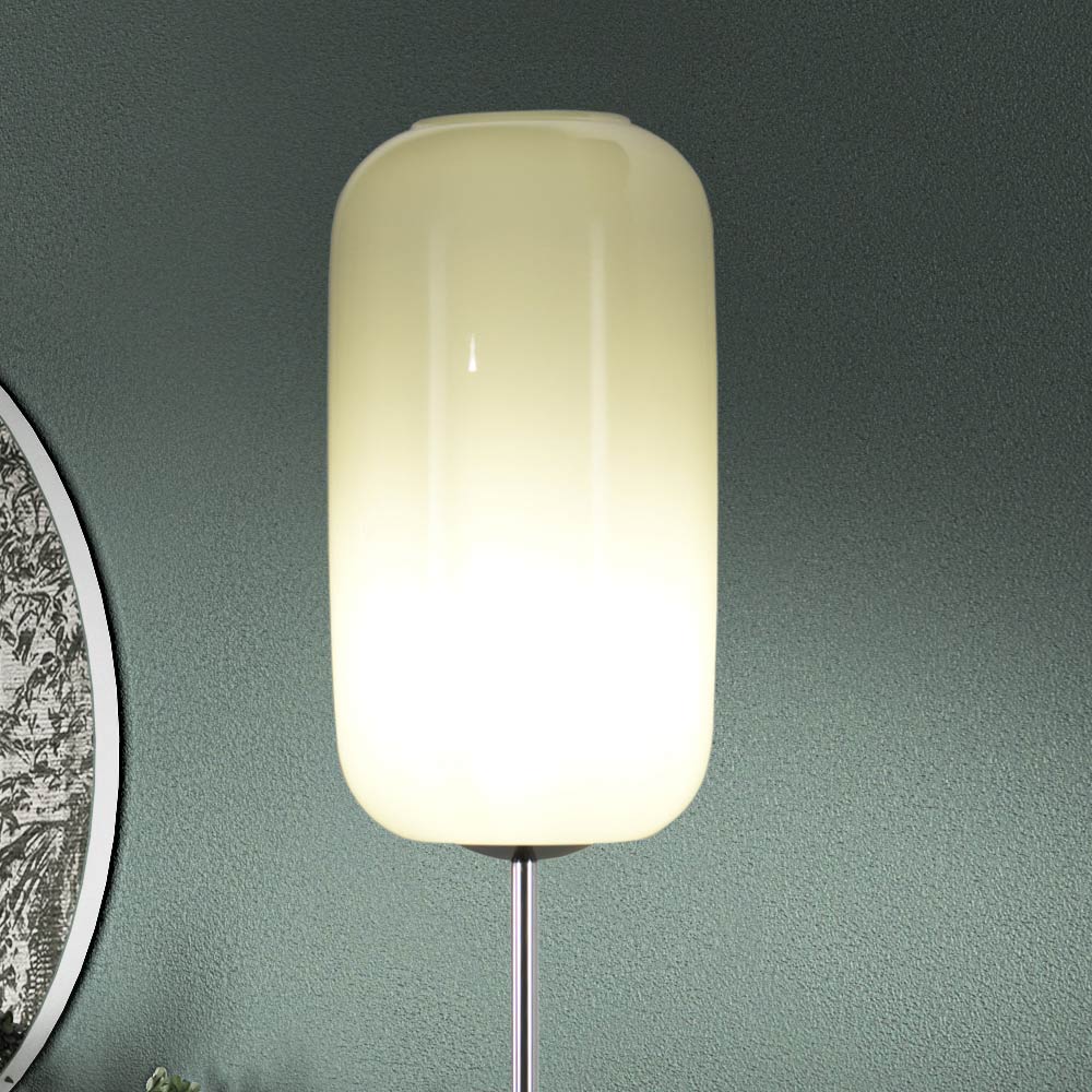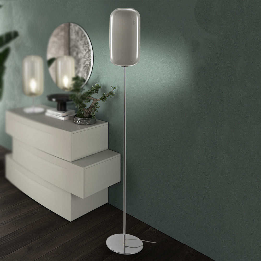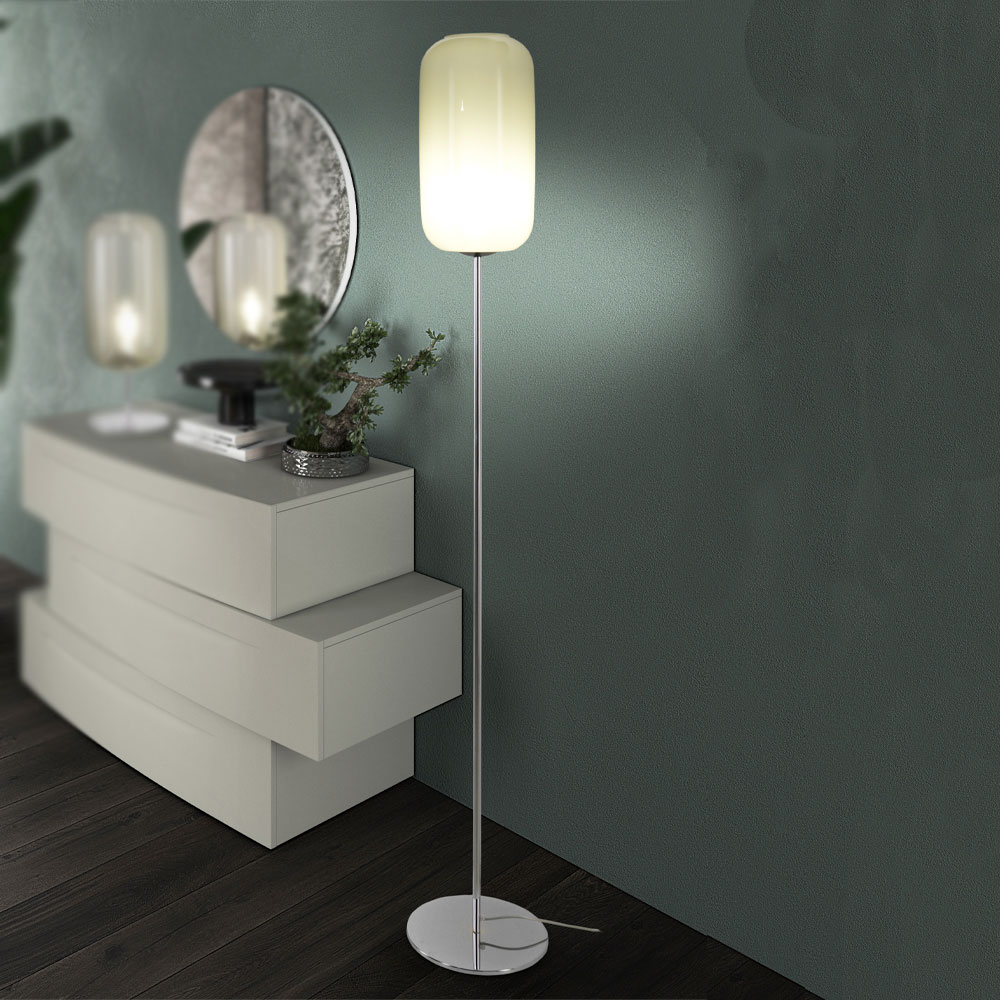 Golvlampa handgjord i blåst glas i ugnarna i den venetianska lagunen, i Italien, enligt de gamla traditionerna för bearbetning av Muranoglas som överlämnats av skickliga hantverkare.