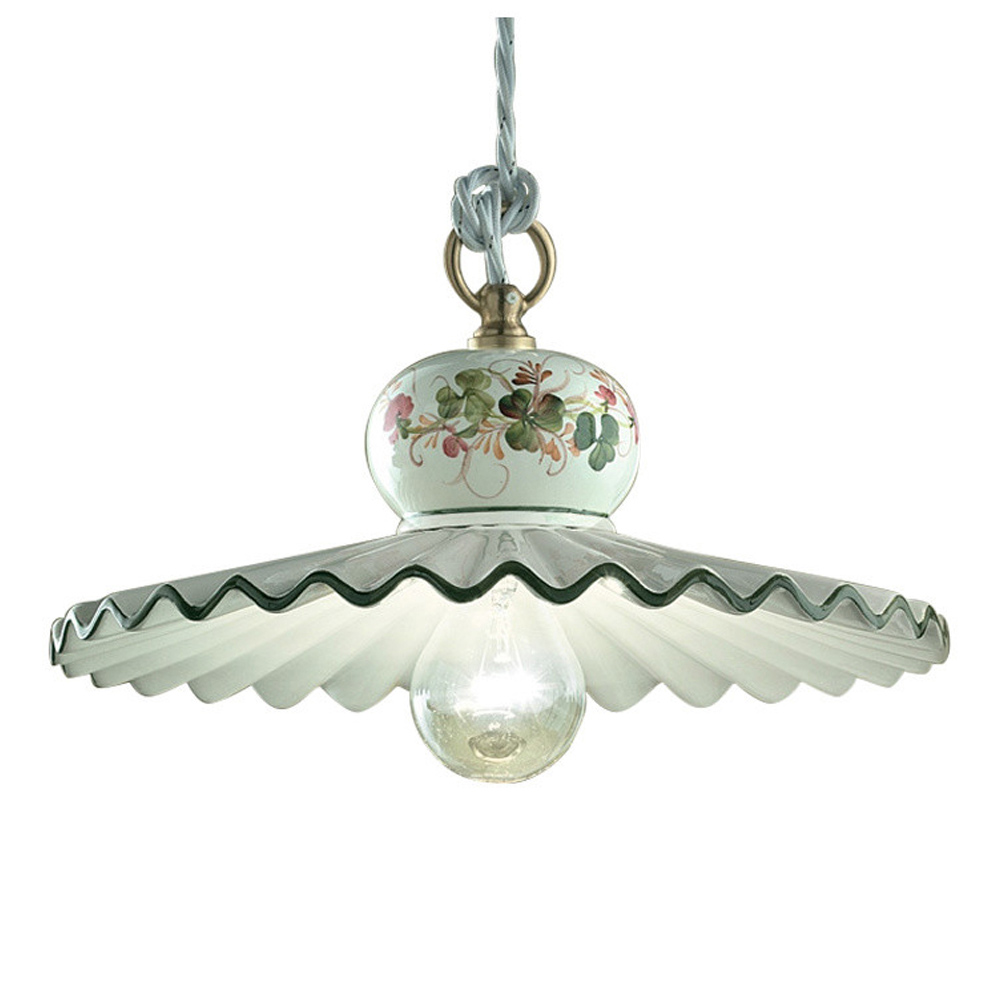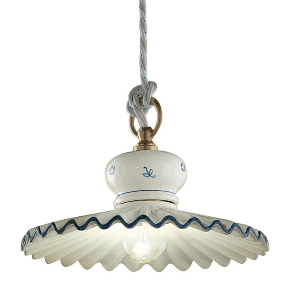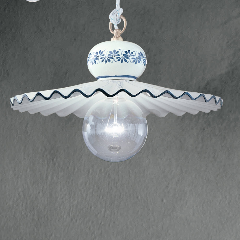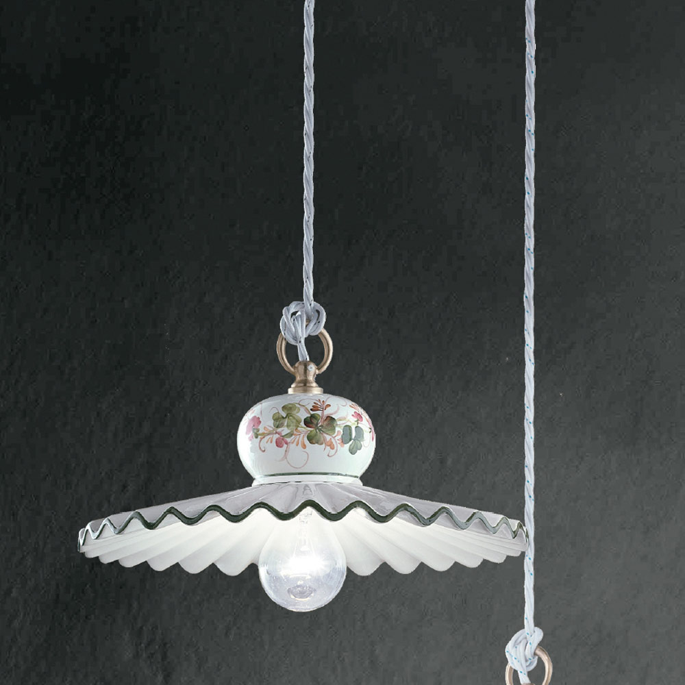 Handgjord hänglampa i metall och handmålad keramik, 3 storlekar tillverkad i Italien av Ferroluce.