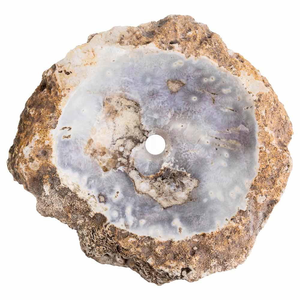 Posina är ett genomskinligt tvättställ för bänkskivan handgjord av en bit agat.