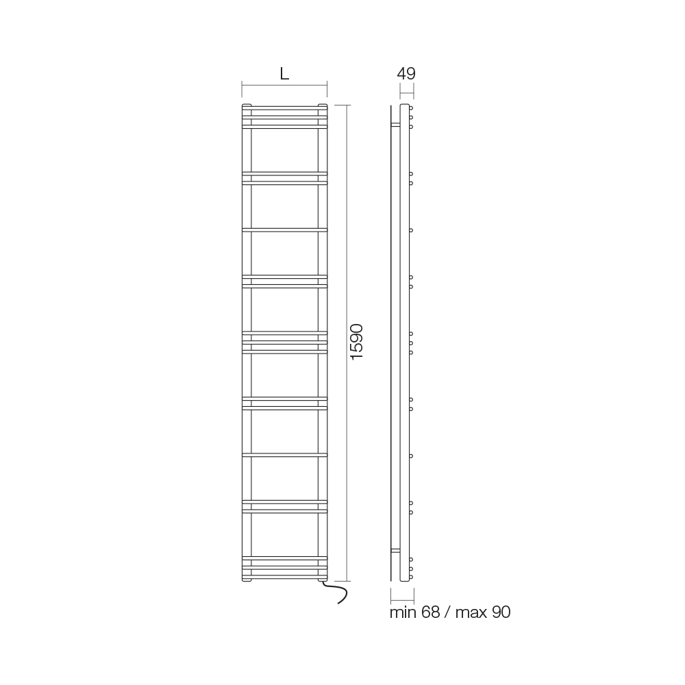 Elektrisk handdukstork i kolstål Tillverkad i Italien