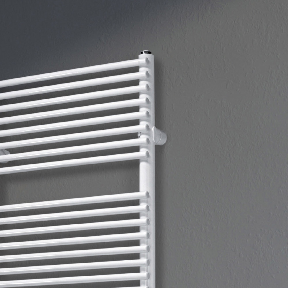väggfästesats, avluftningsventil och blindplugg ingår. Med detta element vill vi svara på behoven och önskemålen hos en allt mer uppmärksam och krävande användare genom att föreslå en handdukstork som balanserar