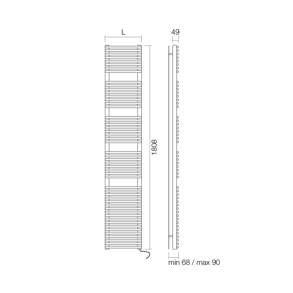 Elektrisk handdukstork i kolstål Tillverkad i Italien