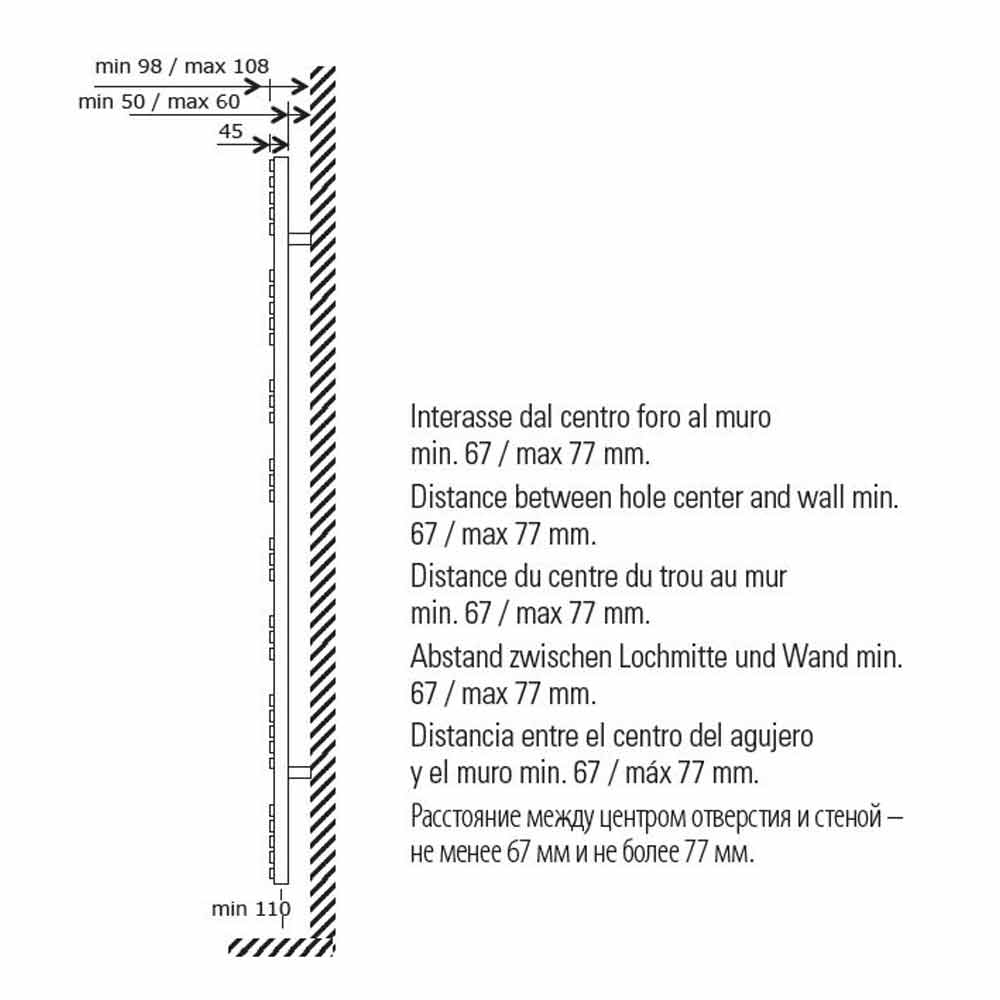 Handdukstorkare för hydraulisk vertikal design på väggen, tillverkad i Italien.