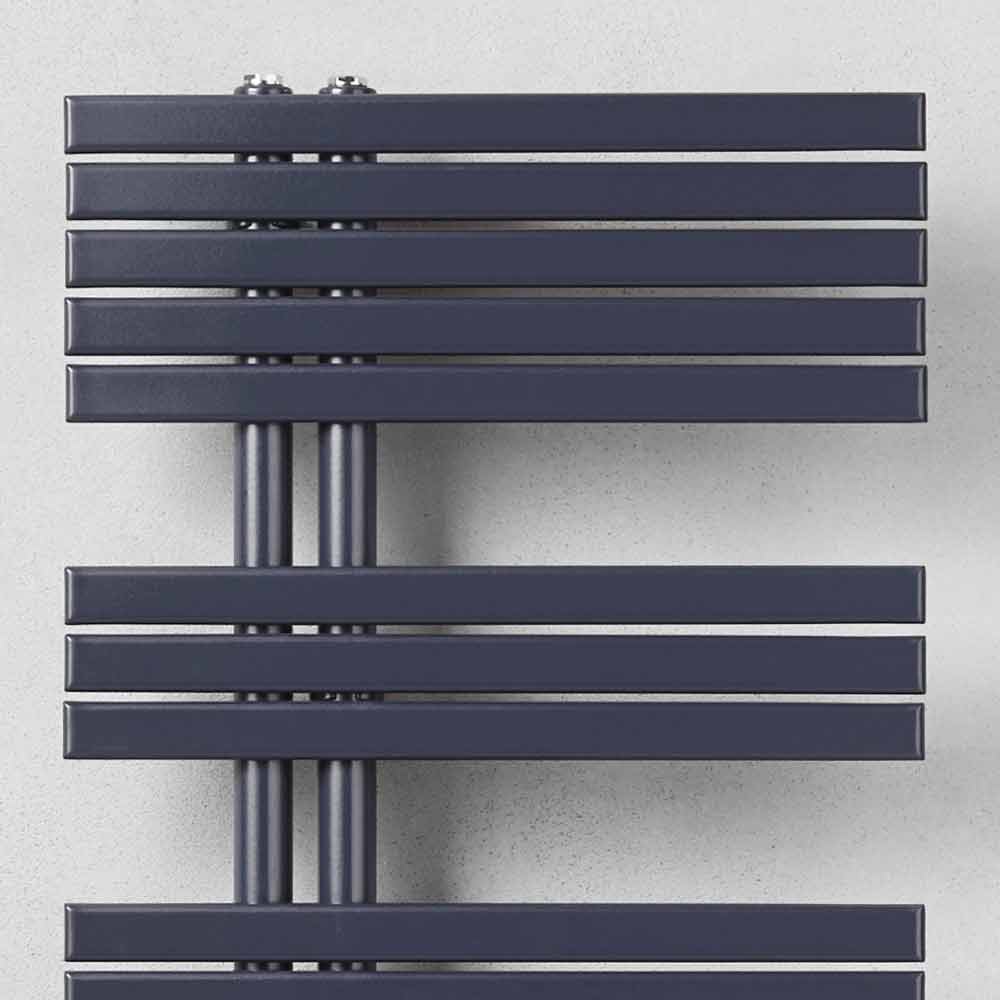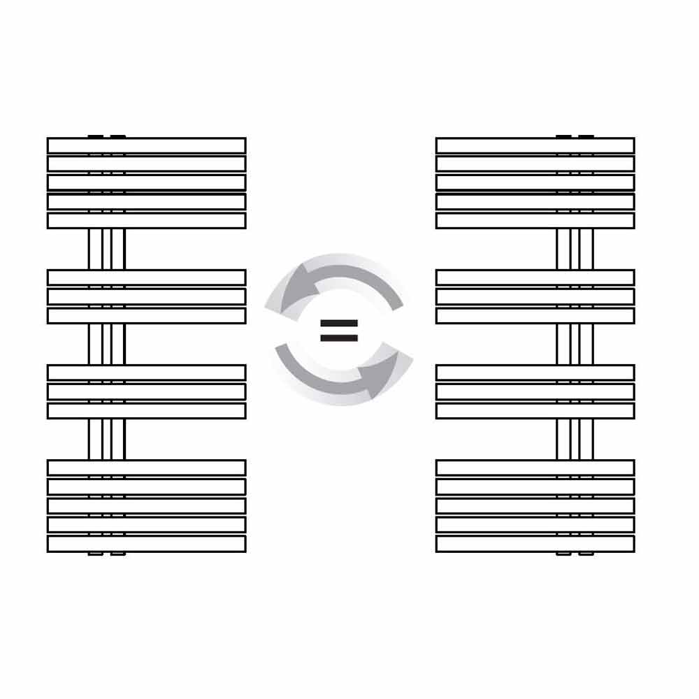 handdukstorkare har en design gjord med vertikala rör med 35 mm diameter och 35 mm horisontella platta lameller. Dess moderna och speciella form gör den
