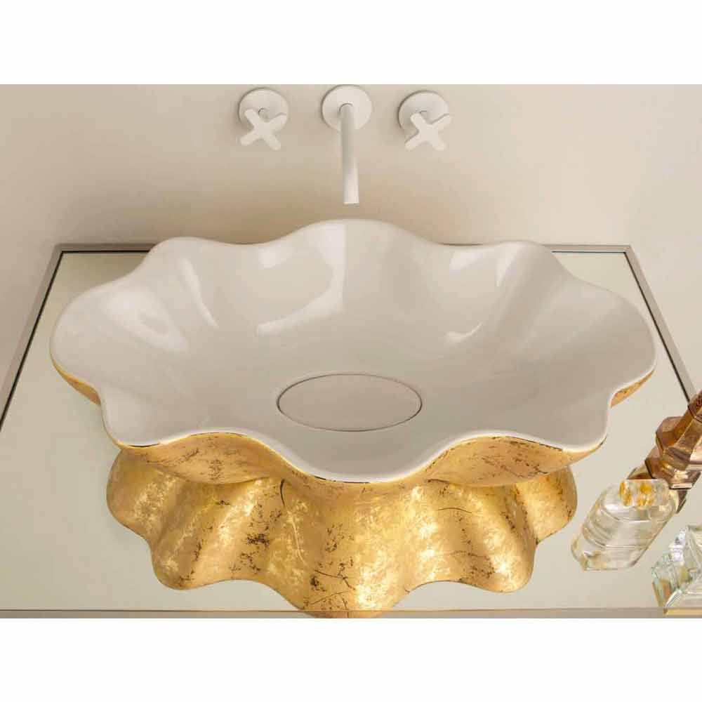 Design tvättställ i vit och guld keramik Cubo tillverkad i Italien