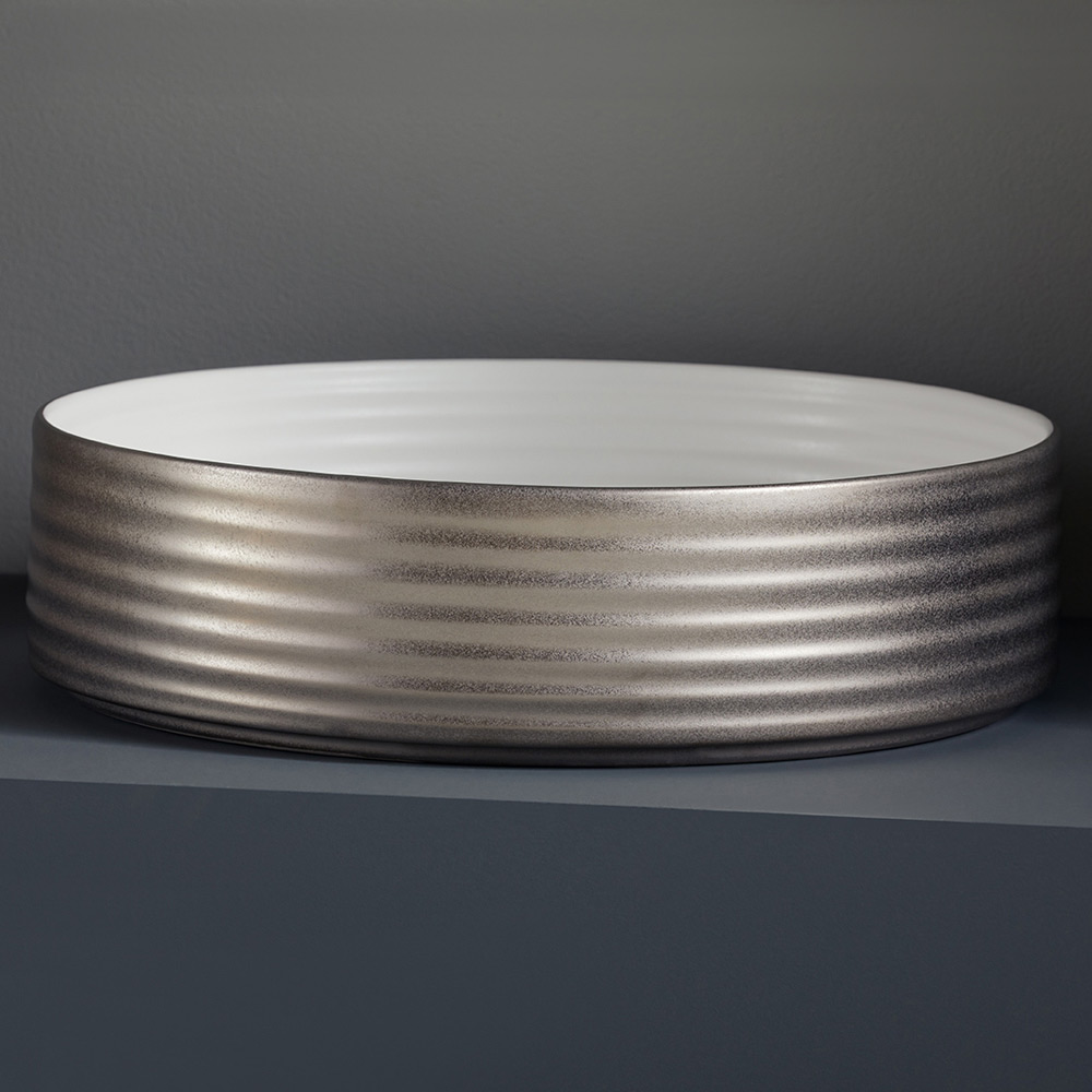 - Blank vit insida, matt brons utsida