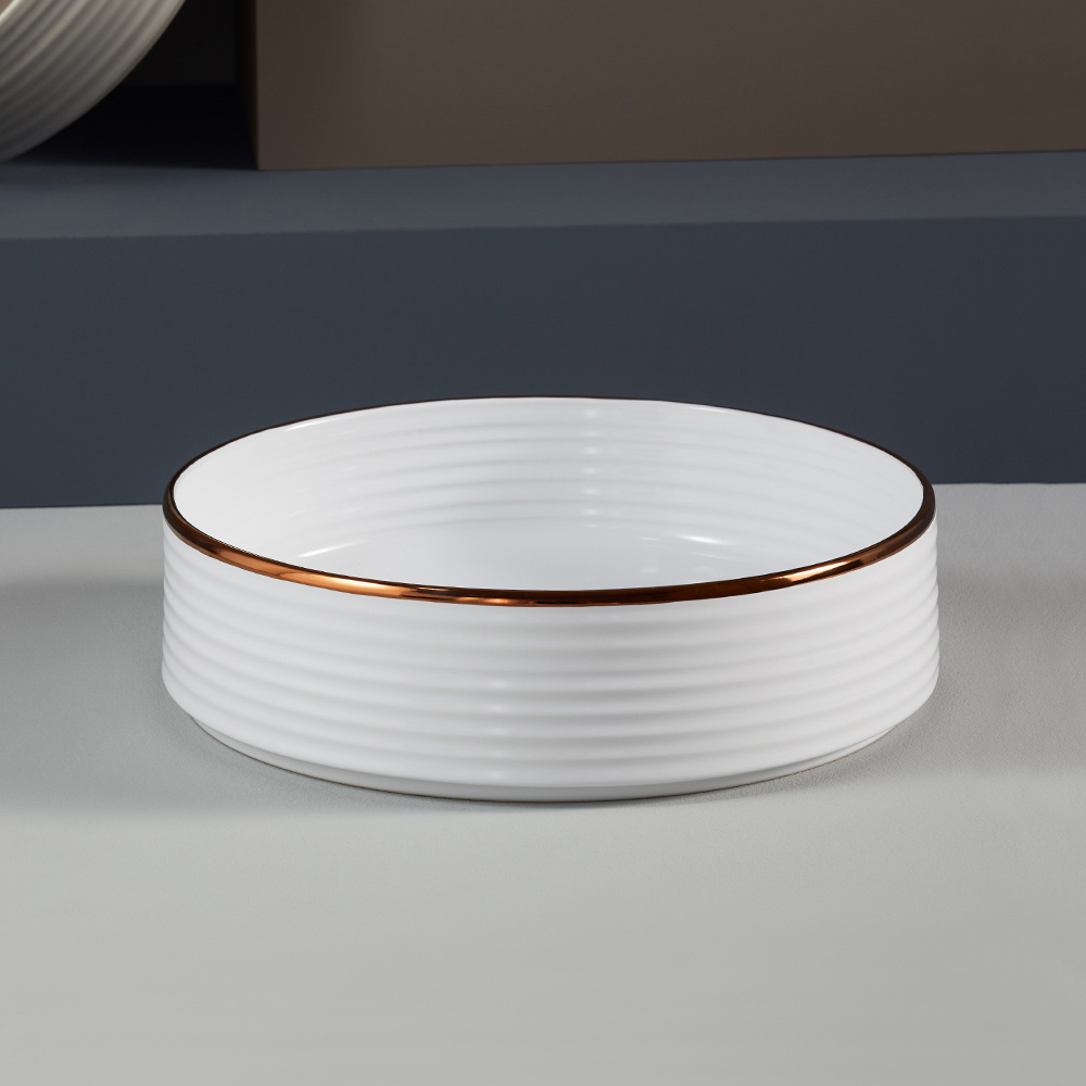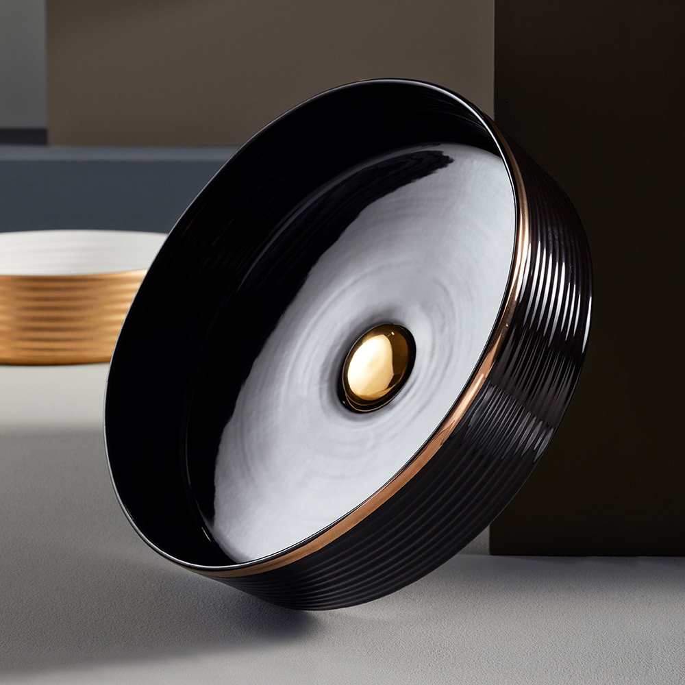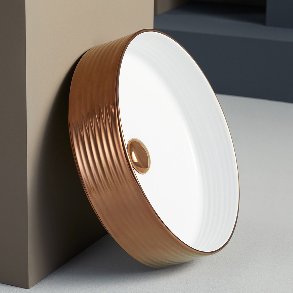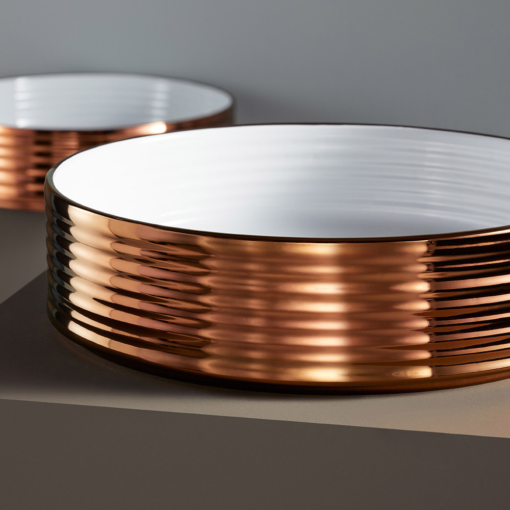 all kvalitet från Made in Italy. Tillgängliga ytbehandlingar:- Interiör och exteriör blank vit emalj, polerad kopparkant
