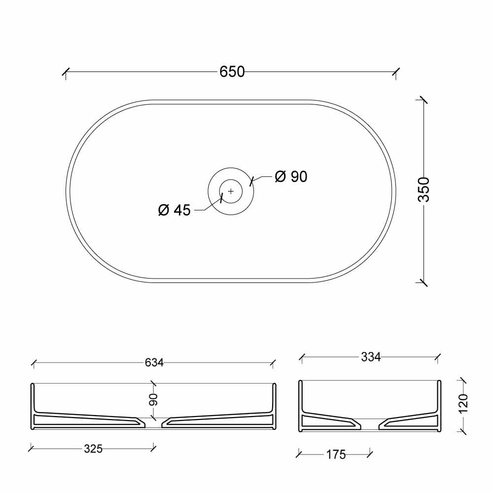 Modern design keramisk bänkhandfat Sun made Italy 65x35 cm