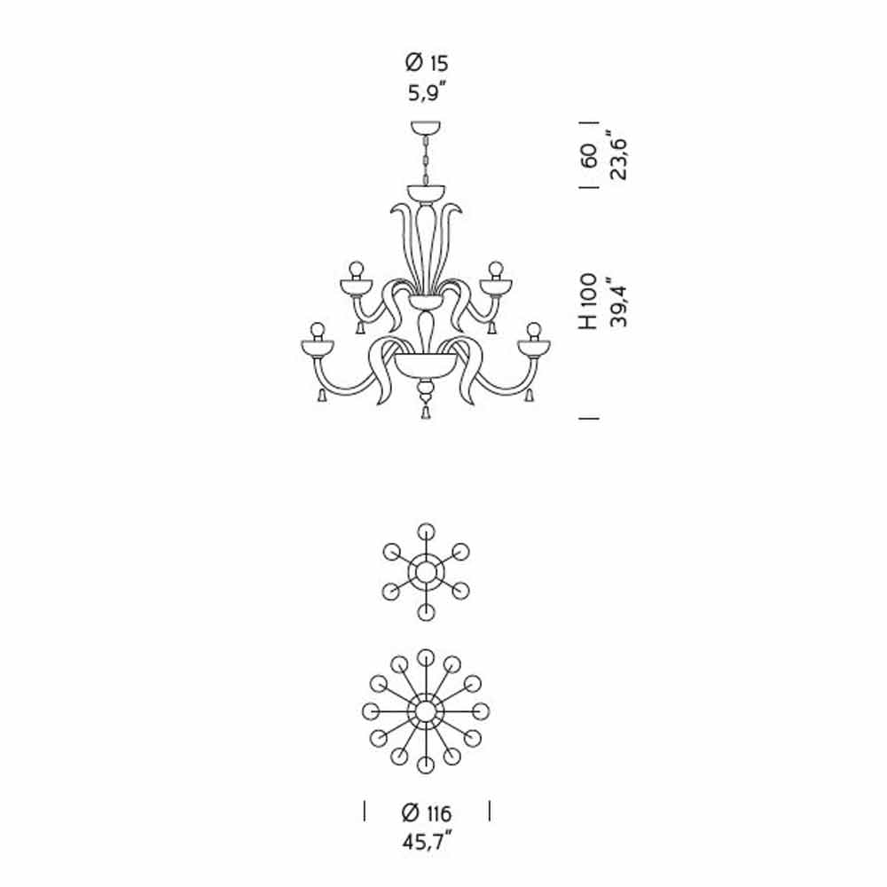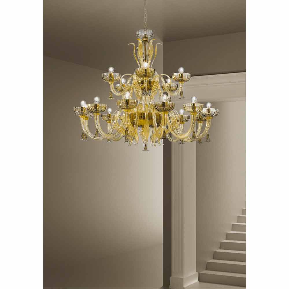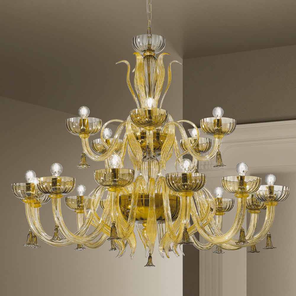 18 ljuskrona i venetianskt glas och 24 k guld, handgjord i Italien.