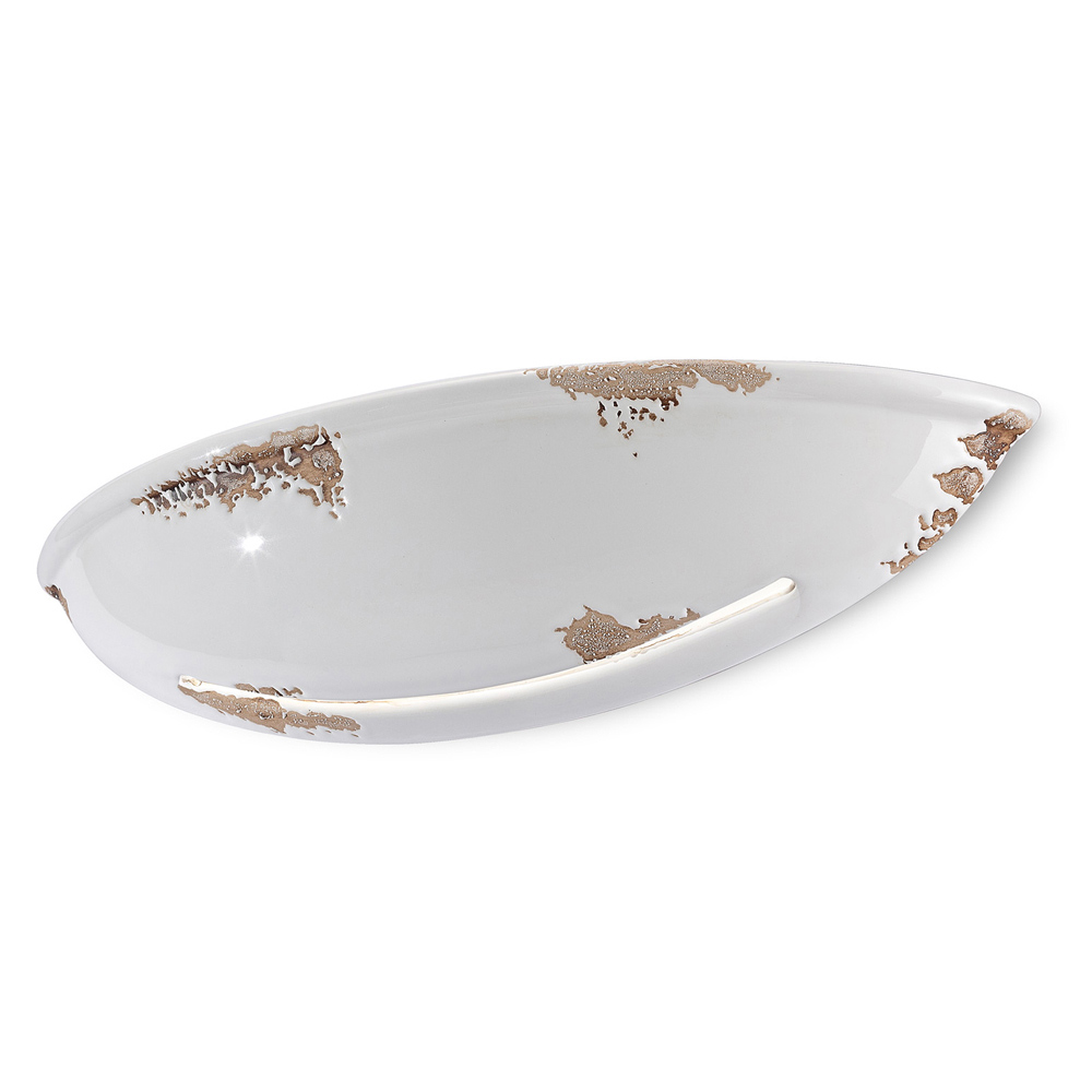 Handgjord halvmåne industriell vägglampa i keramik och metall tillverkad i Italien av Ferroluce.