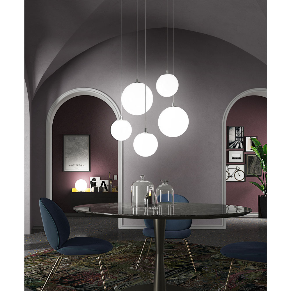 av handblåst glas och gjort unikt av de underbara ljusspel som skapas av diffusorns sfäriska form och den speciella glasbearbetningen.