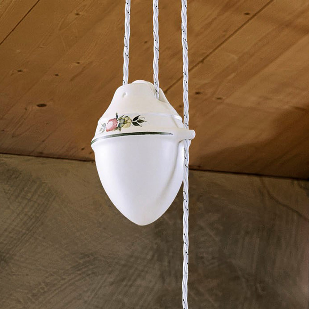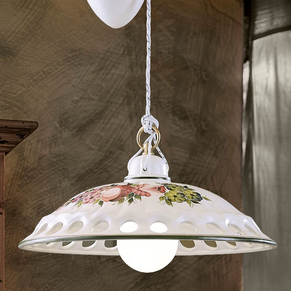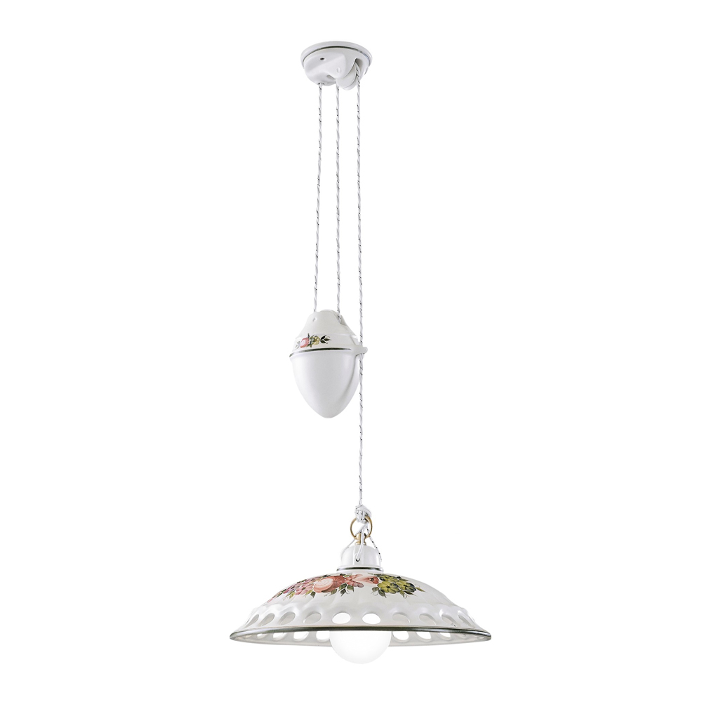 Upphängd upp och ner lampa i metall och handgjord keramik med bälteshällor, tillverkad i Italien av Ferroluce.