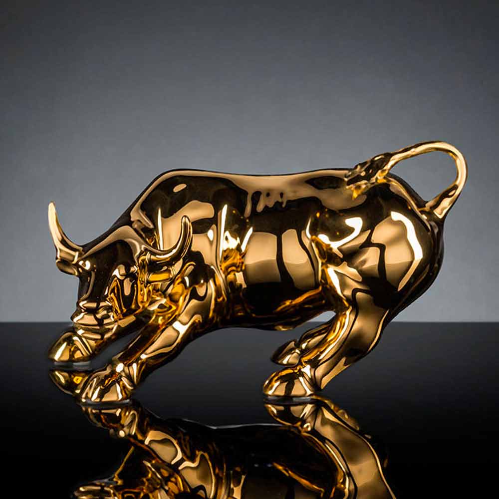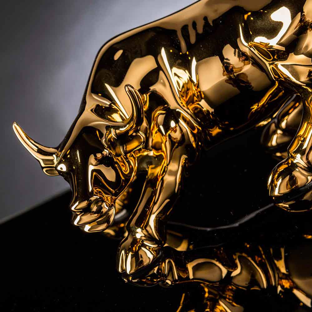 Keramisk prydnad i form av en tjur handgjord i Italien, hög kvalitet.