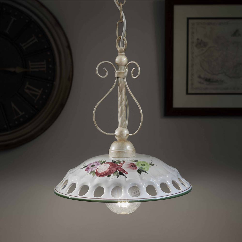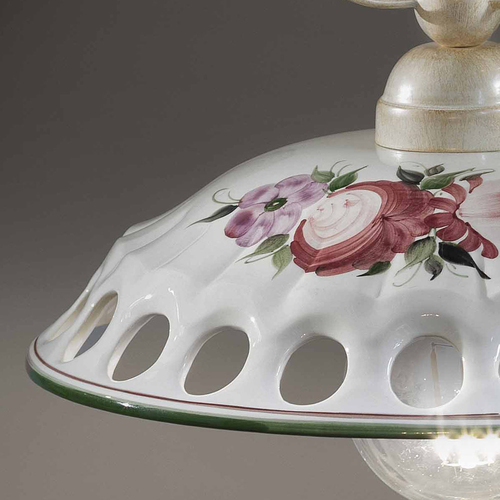 Taklampa i metall och handgjord keramik med tejp, tillverkad i Italien av Ferroluce.