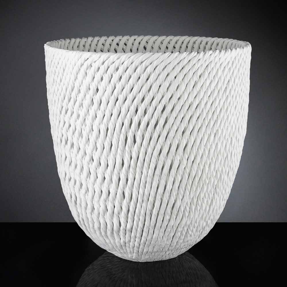 Dekorativ vas för inredning i ogenomskinlig vit keramik handgjord genom en 100% tillverkad i Italien produktion . Ett elegant tillbehör som kännetecknas av den speciella vävda strukturen som påminner om en korg i rotting och därigenom understryker värdet av hantverk som präglas av precision, passion och kärlek för tradition. Resultatet är en idé om exklusiva möbler som är idealiska för att berika stora matbord, entréer, sovrum eller andra utrymmen där du vill komplettera estetiken med personlighet och förfining . En idealisk stil för de mest varierade miljöerna, från heminredning till hotell, restauranger, kontraktsområden, spa men också som en miljö för evenemang och bröllop.