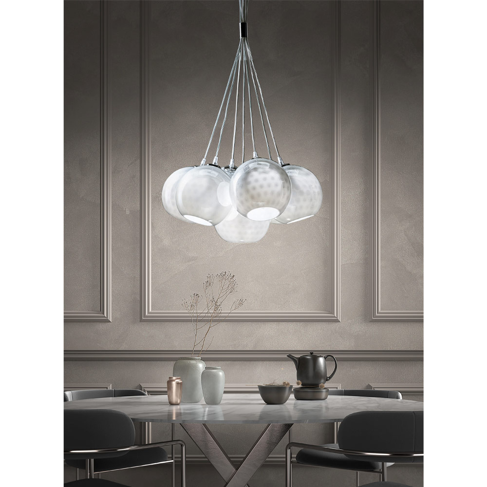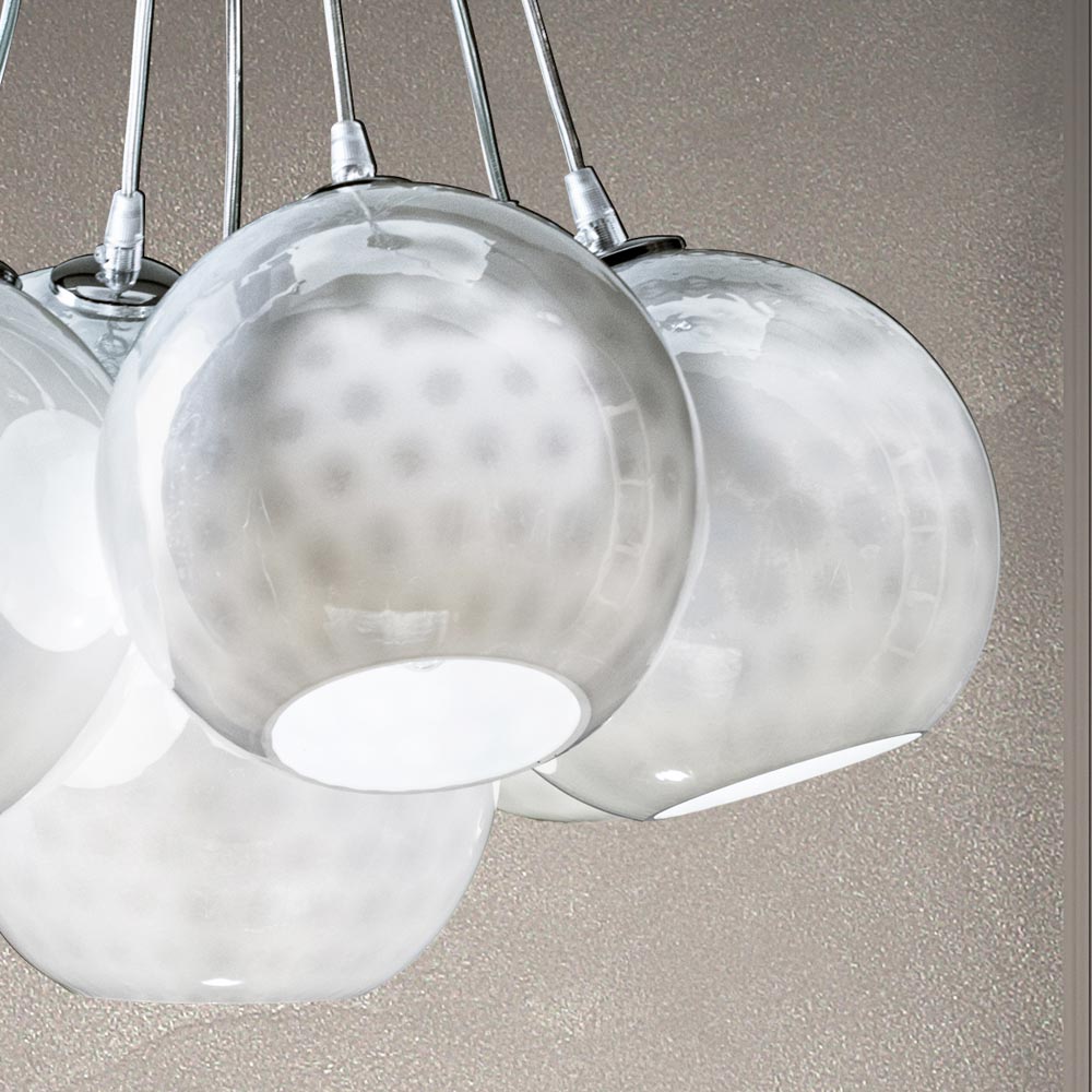 7 ljus ljuskrona i handblåst glas i Venedig med Balloton-teknik.