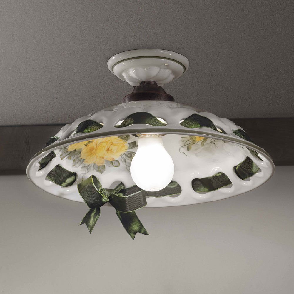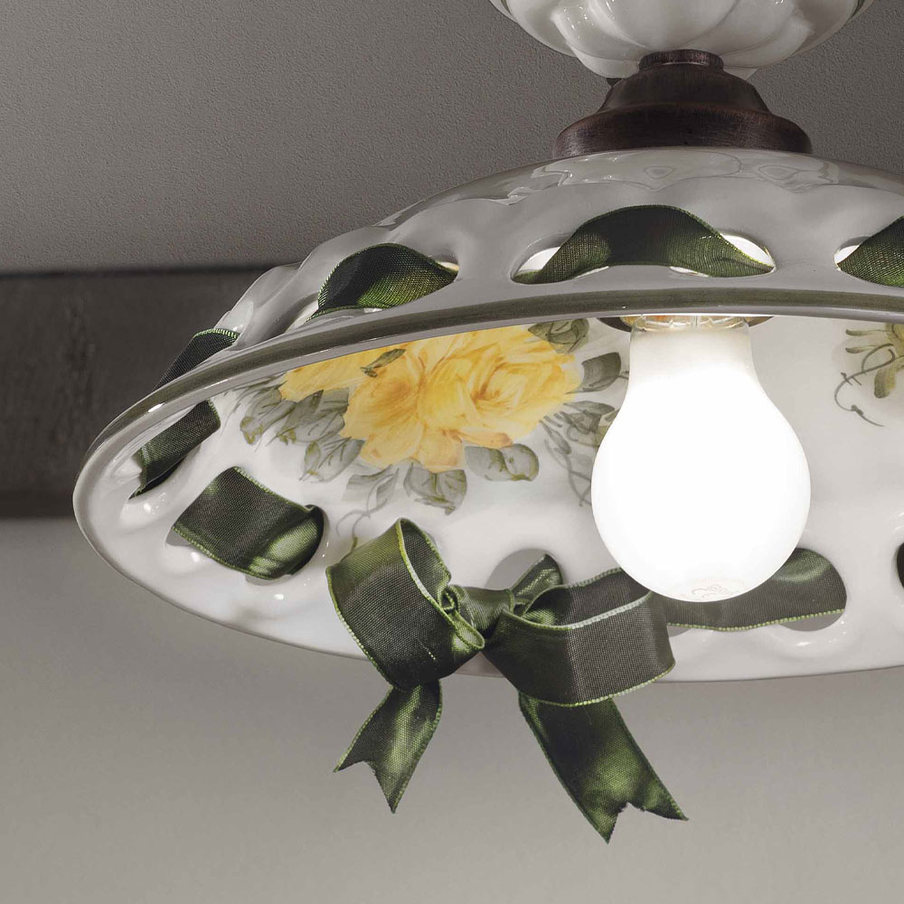Taklampa i metall och handgjord keramik med tejp, tillverkad i Italien av Ferroluce.