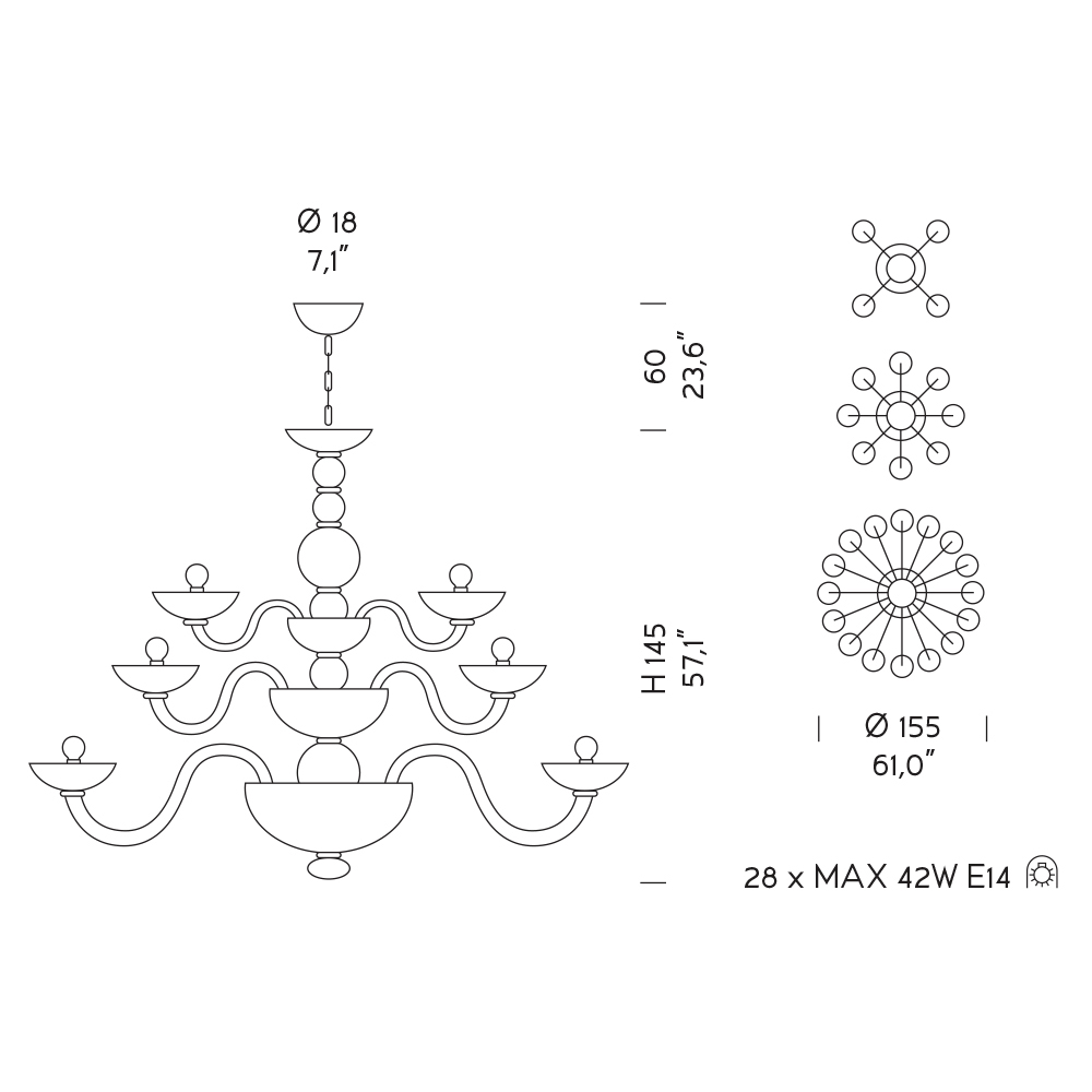 Glödlampor (ingår ej) : 28 x MAX 42W E14