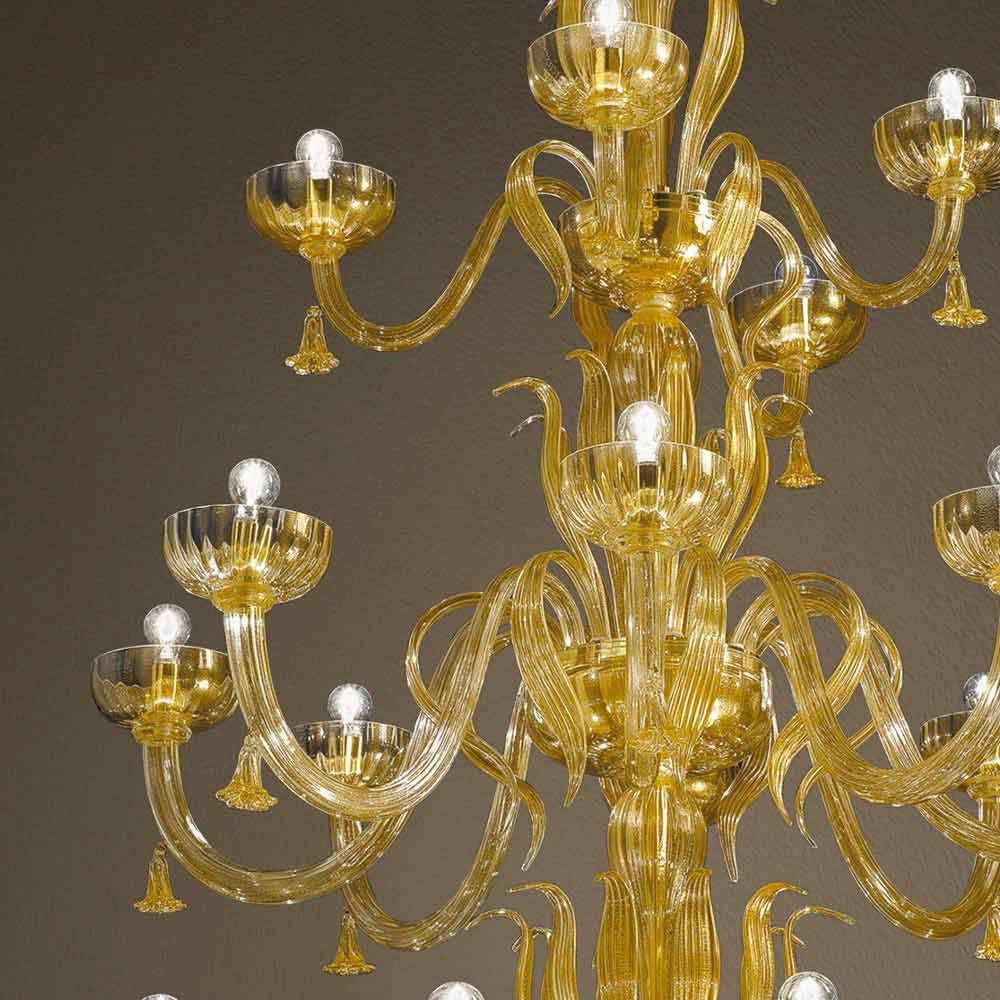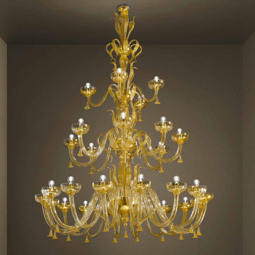 Handgjord ljuskrona med 28 lampor i Venedigglas och 24 k guld, tillverkad i Italien.
