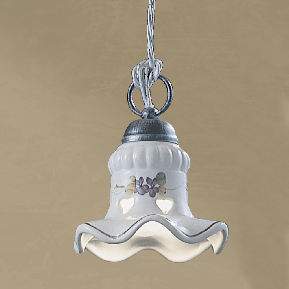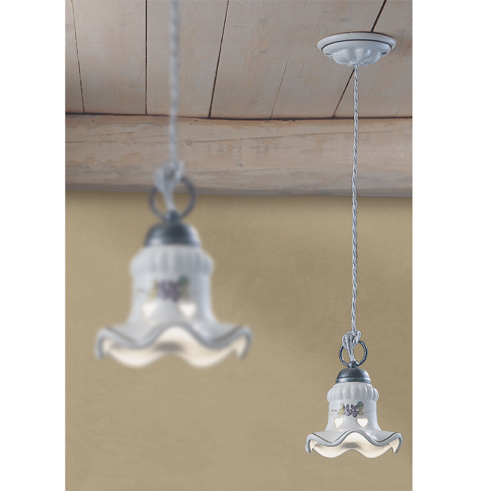 Handdekorerad pendel i järn och keramik, tillverkad i Italien av Ferroluce.