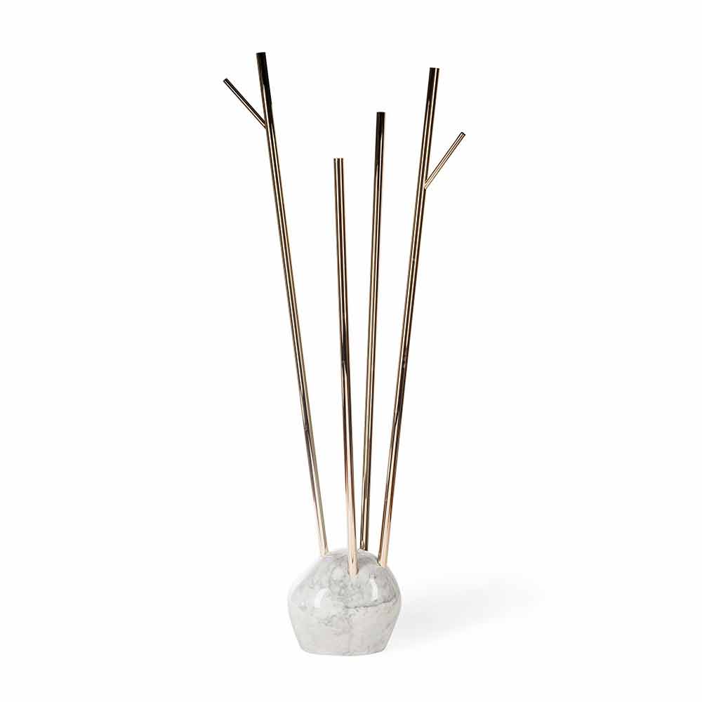 Klädhängare med bas i vitt Carrara marmor och stjälkar galvaniserad polerade 24 kt guldpläterade metall.