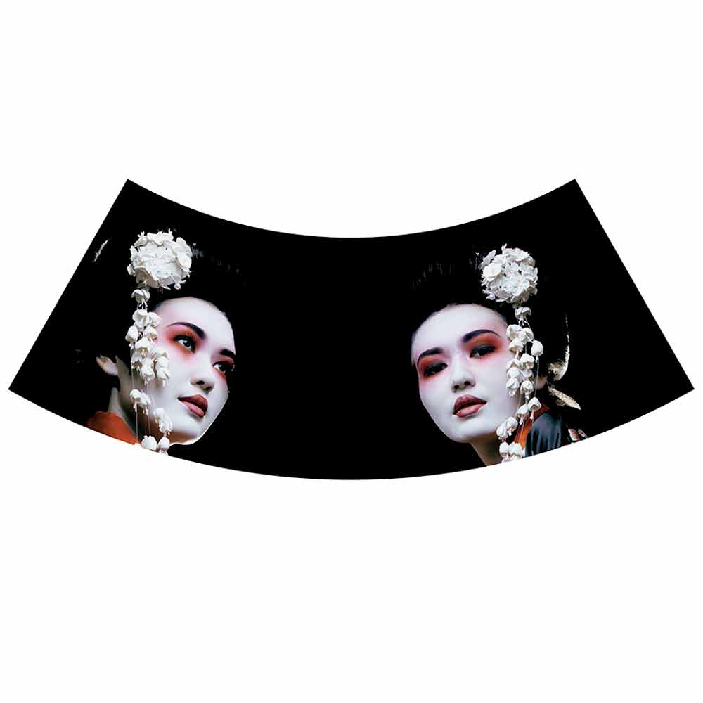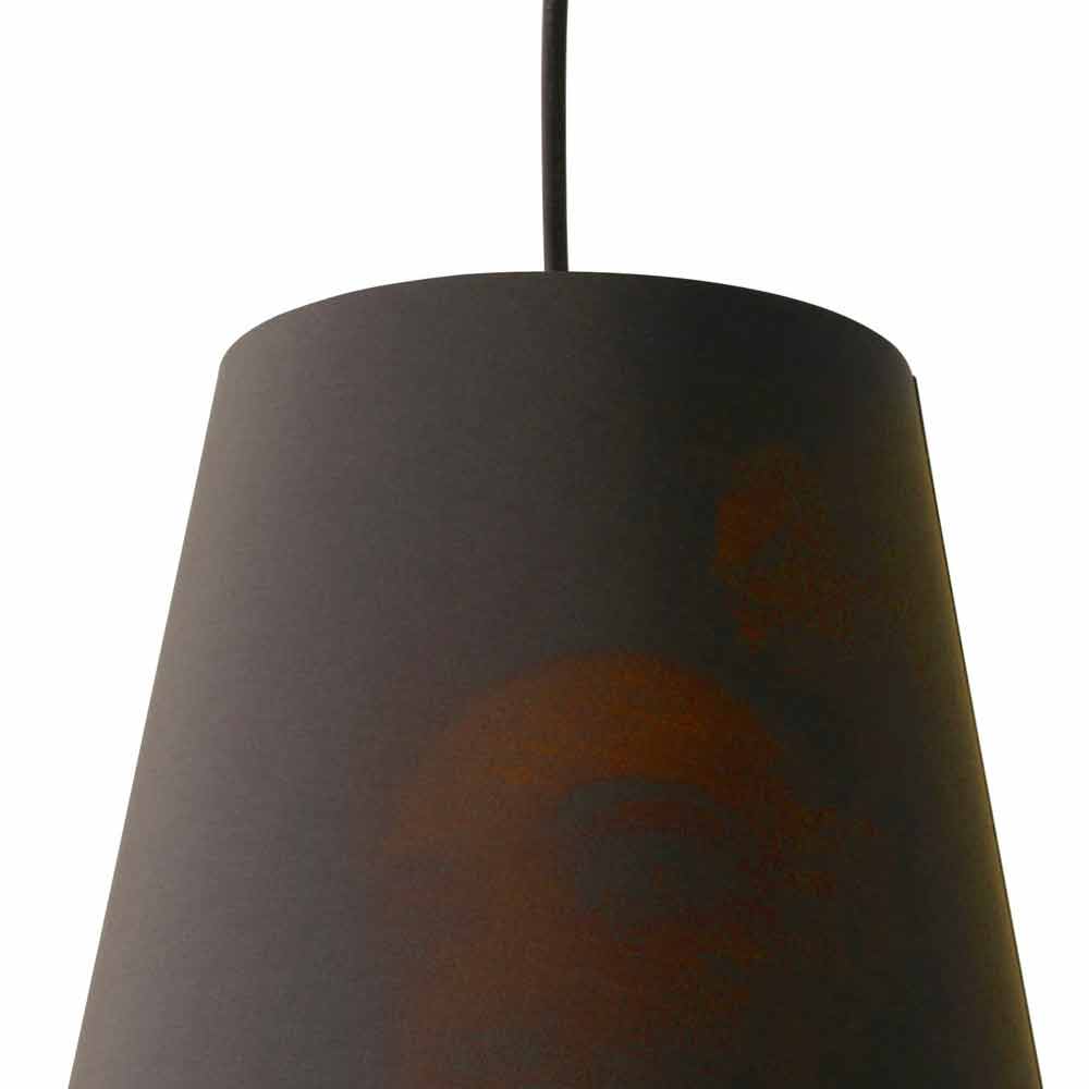 Denna originella och unika upphängda lampa skapades med syftet att göra världen av teknisk och dekorativ belysning samexisterad och samexisterad. Ett komplement där estetik och funktionalitet kombineras till förmån för en modern design bestående av en lampskärm av antracitväv som ger en "se jag ser inte" -effekt av dess interiör, vilket döljer dess huvudsakliga särdrag: ett modernt inre tryck av ansiktet på en kvinna, som kan väcka suggestiva atmosfärer och bryta traditionella system.
