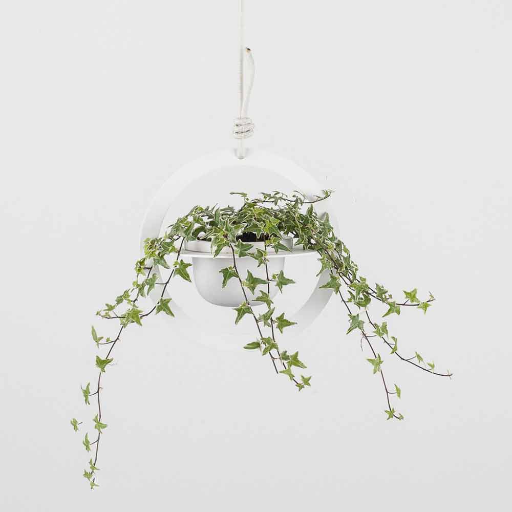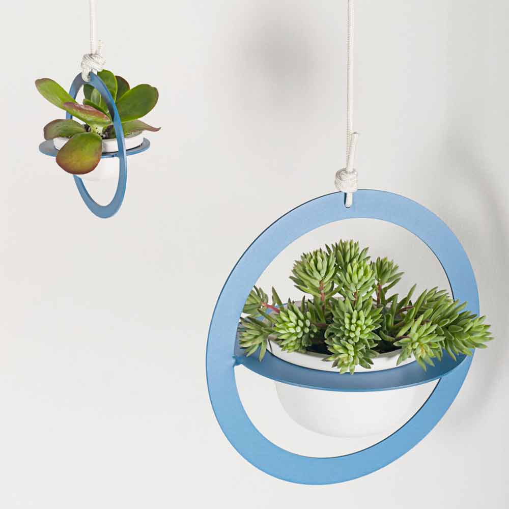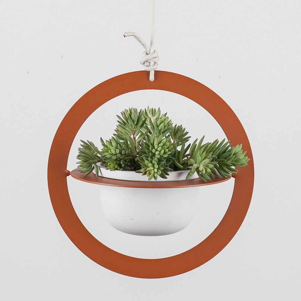 Hängande växtkruka tillverkad av stål och tillverkad keramik i Italien.