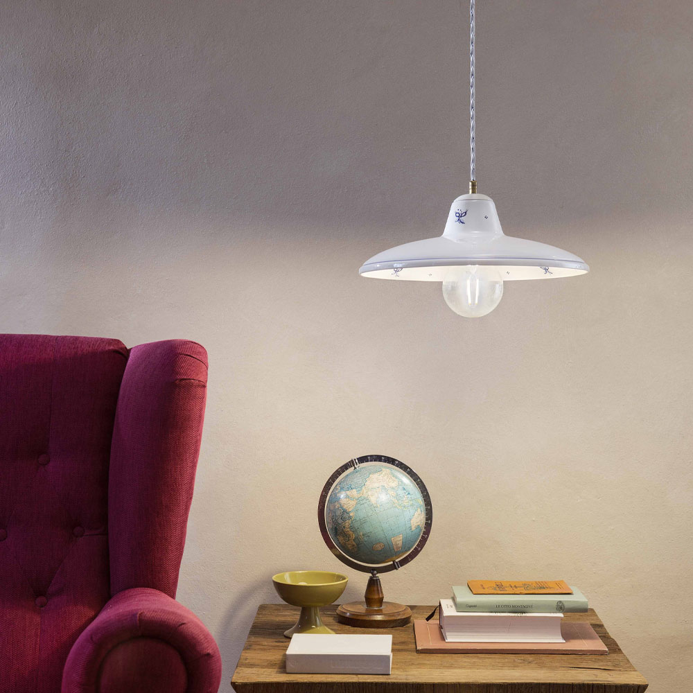 Handdekorerad pendel i järn och keramik, tillverkad i Italien av Ferroluce.