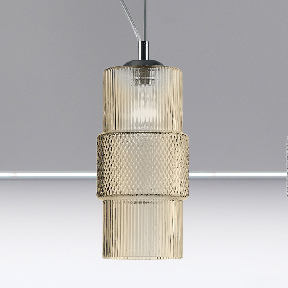 lager eller genomskinligt glas med randig bearbetning kännetecknad av en romantisk estetik och kapabel att ge fascinerande belysning tillsammans med oöverträffade ljusspel.