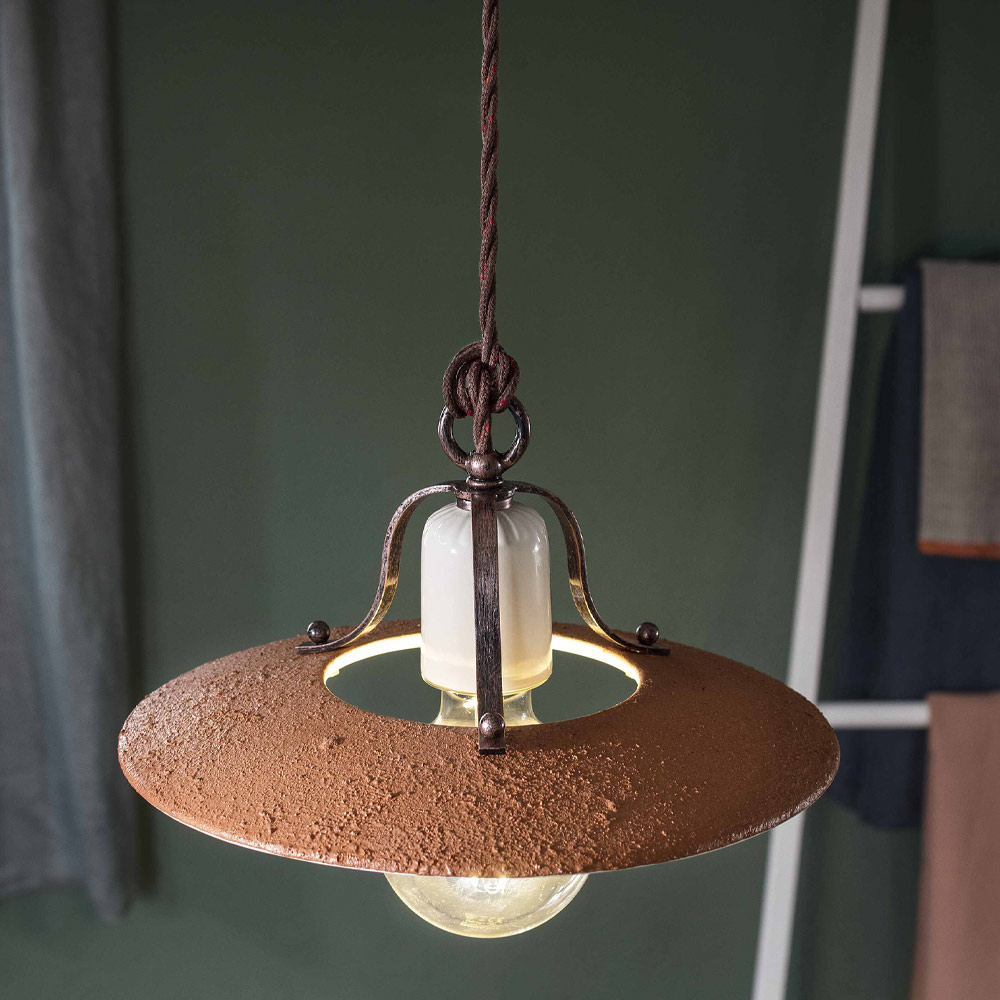 Hänglampa i järn och handgjord grov keramik, 3 storlekar tillverkad i Italien av Ferroluce.